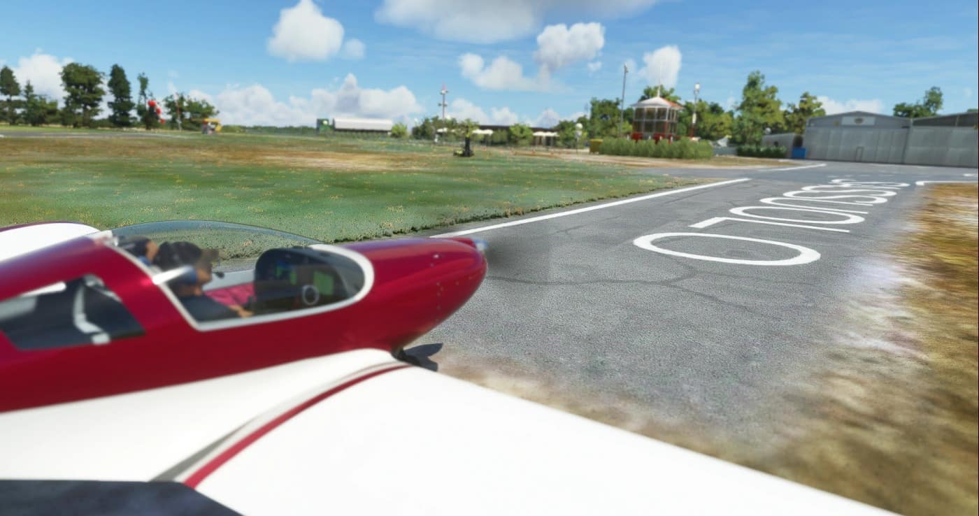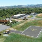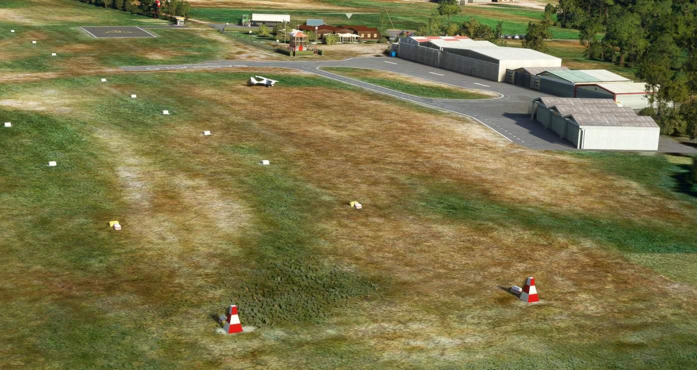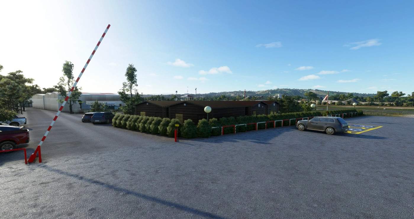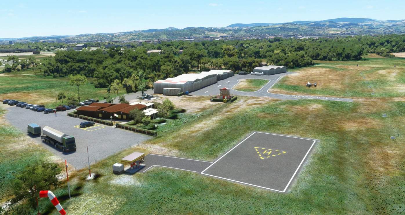 As all my sceneries, Sassuolo features – all custom buildings and PBR textures- custom night lighting – no additional assest are required to be downloaded- custom runway markers are visibile from far away in order to improve visibility- the Secchia river as been narrowed to match Bing’s ortho imagery for several kilometers north and south from the airport, and all vegetation around has been “regrown”- I’ve added some generic assest to re create the Frantoio (sand extraction plant) on the left side of the river, it is an important VFR point marking the entrance for left downwind runway 36- the Fiat G91 bomber gate guardian as been added as well , it’s a very old FS2k model from Kazunori Ito, I made the mandatory repaint work in order to get it like the original one- default MSFS handling pushback vehicles and personell: it might be overkill at times, but especially on Sundays or airshows this airport may become very busy