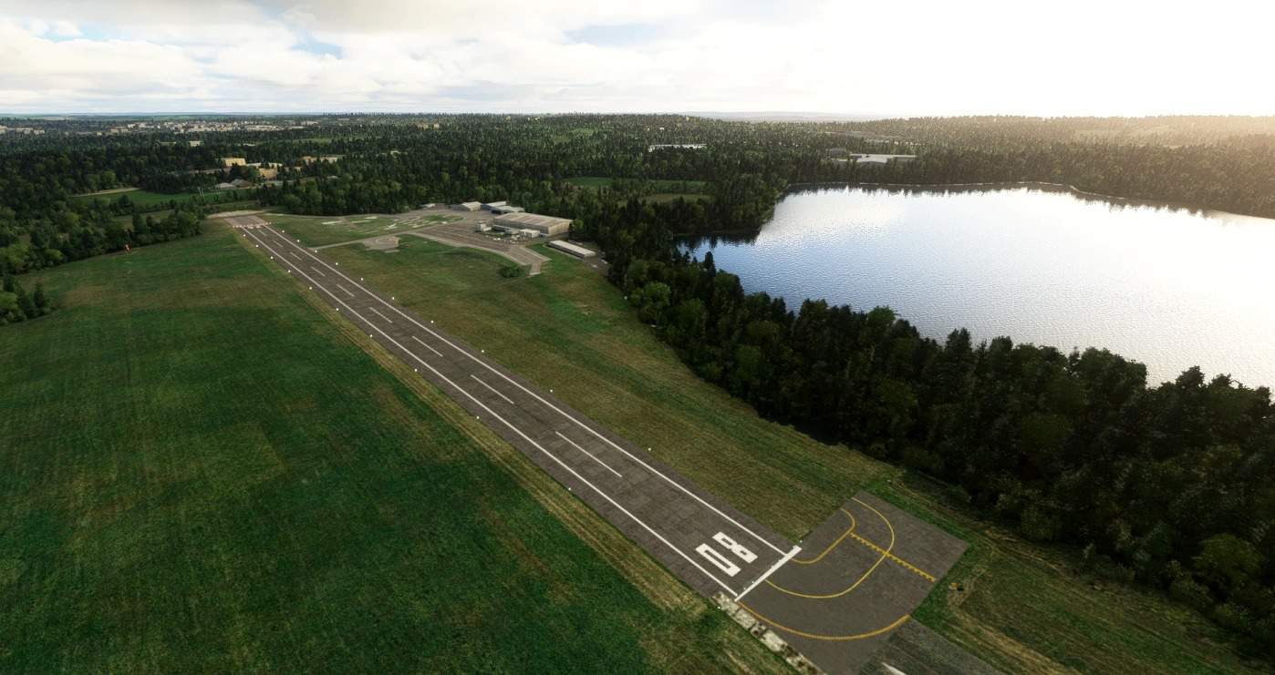 Another airport re-crafted from scratch to match the real-world features as closely as possible. It mostly uses stock objects but it includes custom taxiway paint markings and custom model for rugby posts on 26 approach (crazy close to the glideslope!)