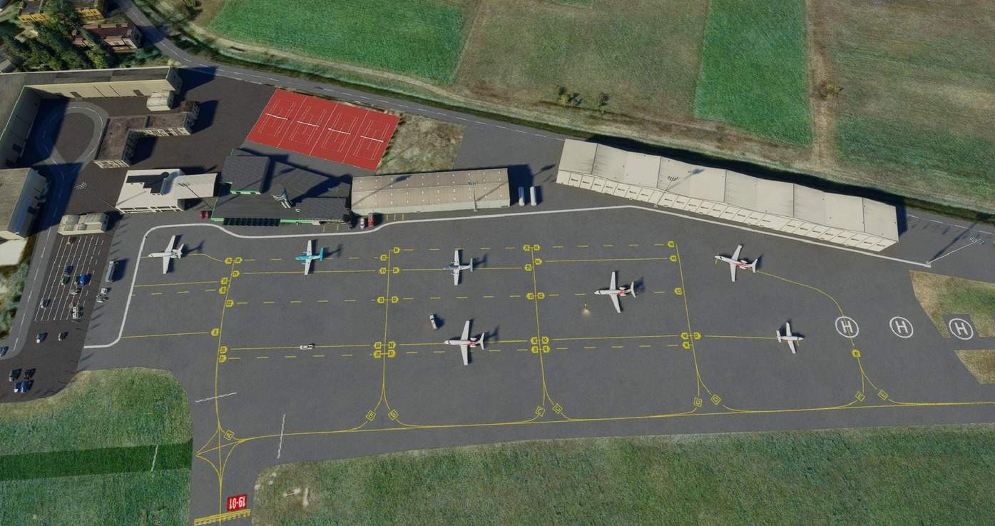 * Completely redesigned Apron with real parking names, helipads, lines and lights so that we actually see something at night.