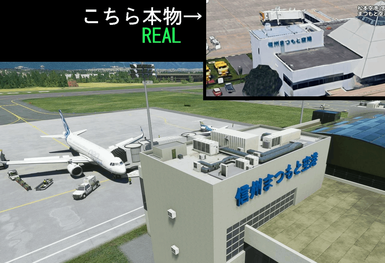 MSFSの標準の素材を利用して松本空港を改造しました。