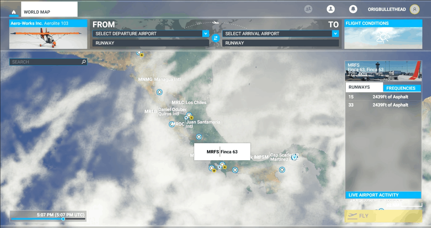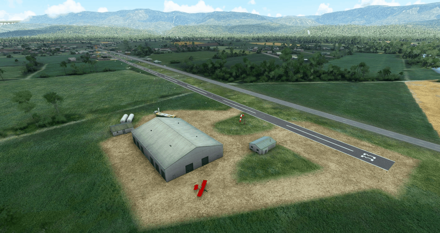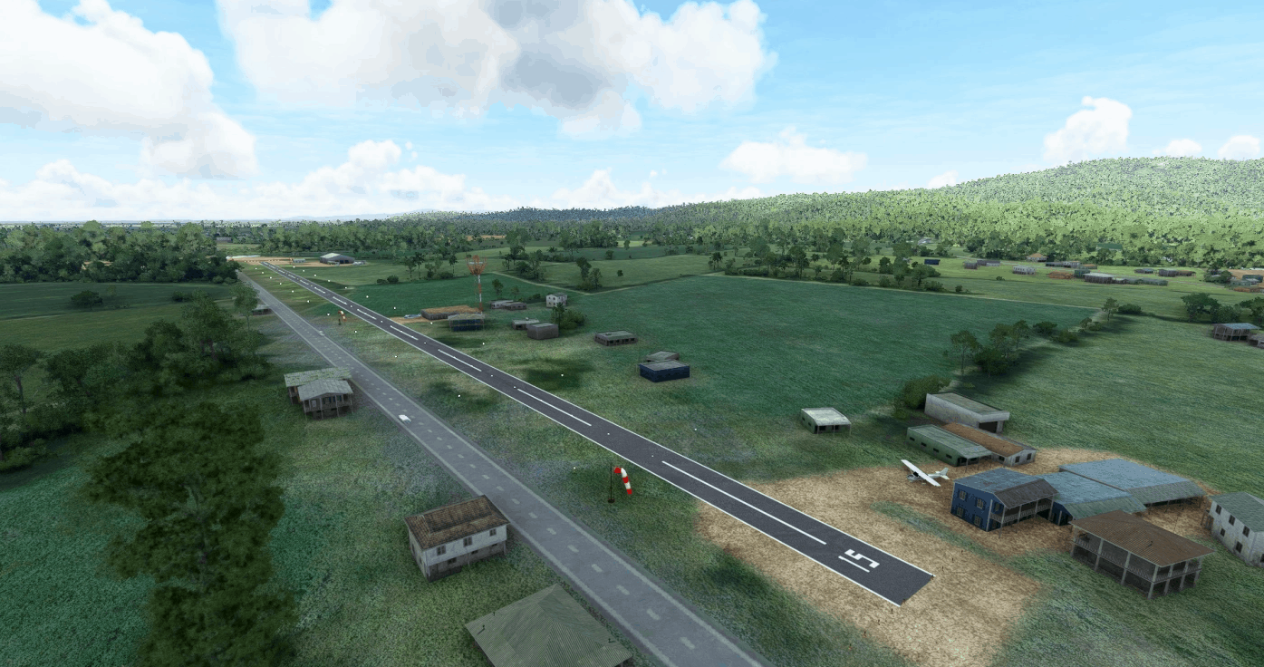 MRFS Finca 63 airport is actually included as stock in MSFS. However, it’s a pretty poor rendition so I rebuilt it as a compromise between reality and how it appears in the FSE world. According to Wikipedia, Finca 63 has a crushed rock runway and no services nor scheduled flights. All it has are a few hangars. It sees seasonal use by cropdusters. In FSE, however, it’s got an asphalt runway, fuel, and a passenger terminal. And in MSFS, it’s got a 400m grass runway, which is way too short.