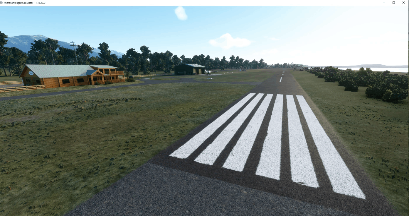 – secondary grass runway immediately adjacent and parralel to the sealed runway not included as a selectable runway because the two runways are so close together that it´s nearly impossible to select the correct one on the world map screen. Grass runway however is still visually represented by marker boards, cones and some subtle marks and tracks on the grass