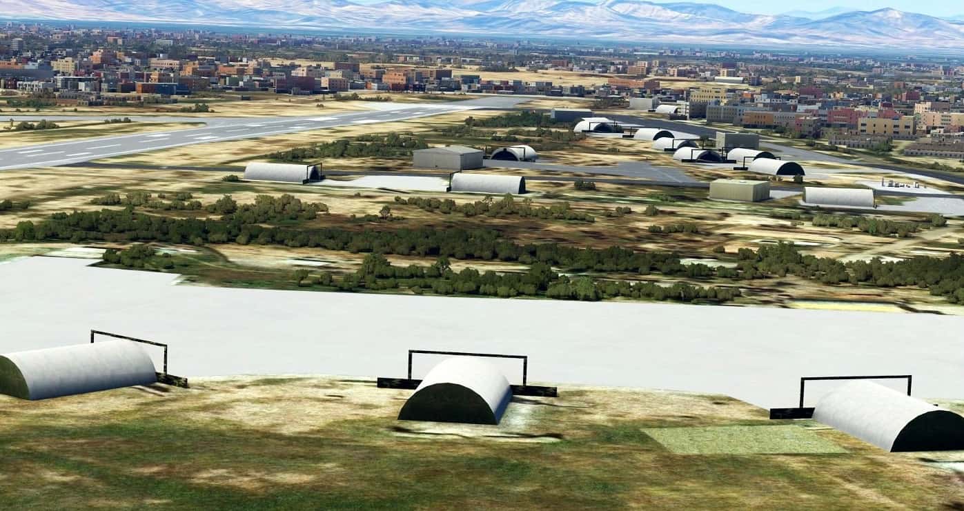 Bacha Khan Intl Airport is the largest airport in KPK, Pakistan. Hand-crafted terminal and various buildings in the vicinity of the airport.