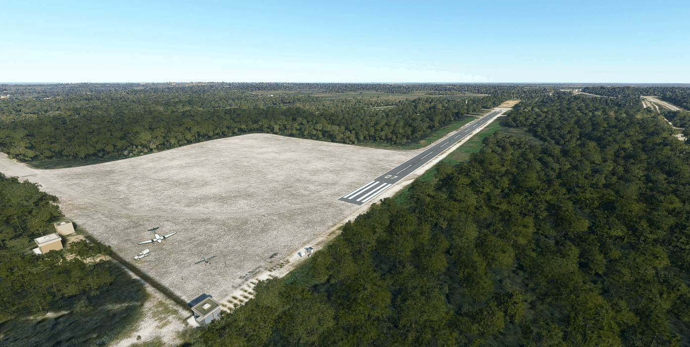 I created the runway 07/25 and 2 parking spaces and a fuel station.