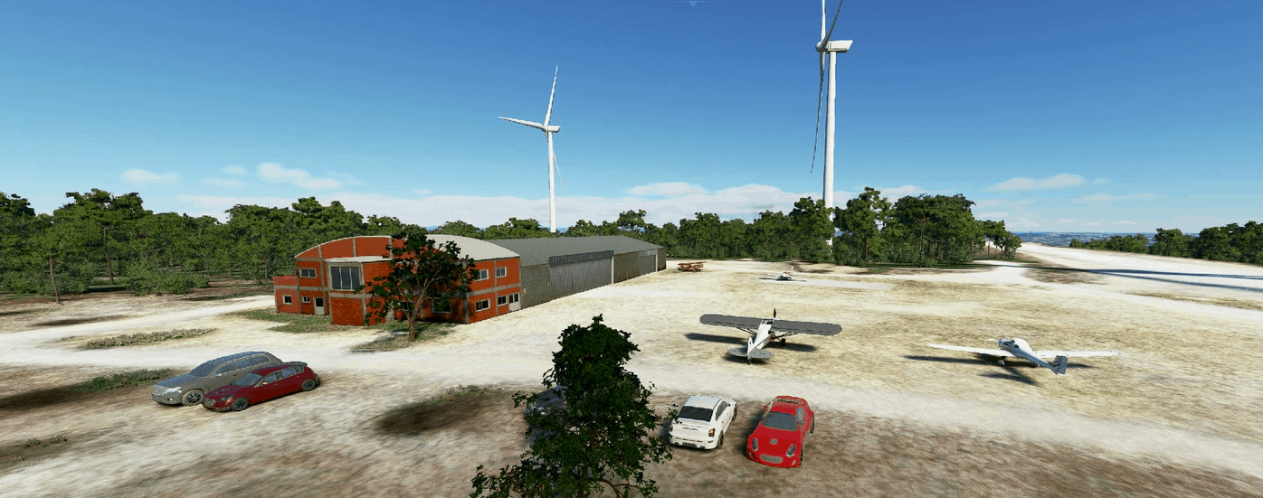 This scenery is related to an old runway that is not in use but still present in the country. Building is handcrafted.