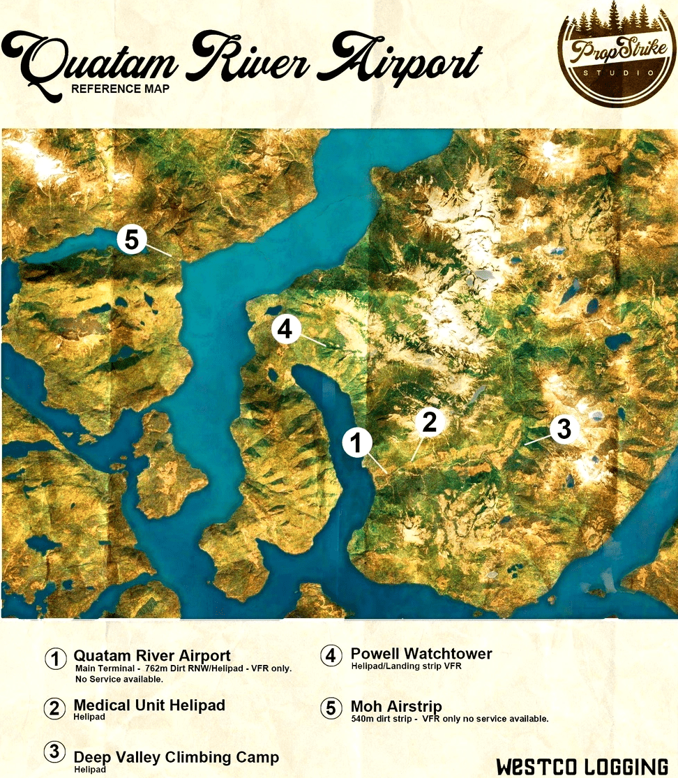 Quatam River Airport is a small airport in the mountains of British Columbia, Canada. The airport is located in a series of fjords and arms so although ocean water is just off the runway it is a long journey to the open sea. The airport is just meters from the Quatam River which leads up a long valley and into the tall mountains. The airport is a hub for forest workers who are clearing out the forest up and down the valley sides. The airport has been there for more than 35 years serving many purposes.