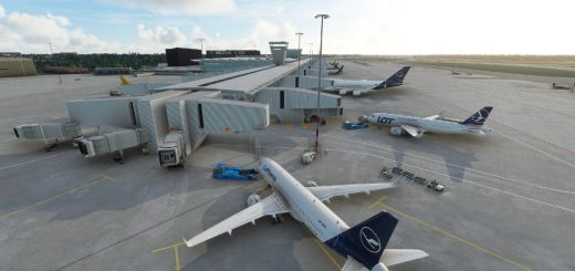 This changes terrain profile and fixes areas around the airport that aren’t covered by aerial imagery. You can use add-ons for this airport like runway markings by Toshi-chan and buildings by Mr.Custo but not fully compatible yet due to terrain changes. Overall package is over 1.3GB extracted.