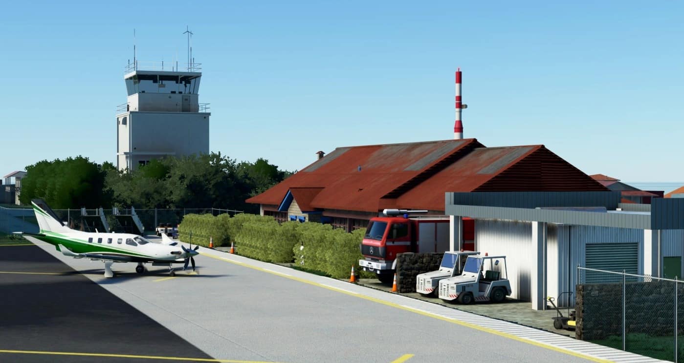 If you downloaded version 1.0, you might get missing textures on the Apron and unable to see the parked firetruck. You have to download the free Paderborn Airport in the Marketplace or you can download the new version of this file, version 1.1.