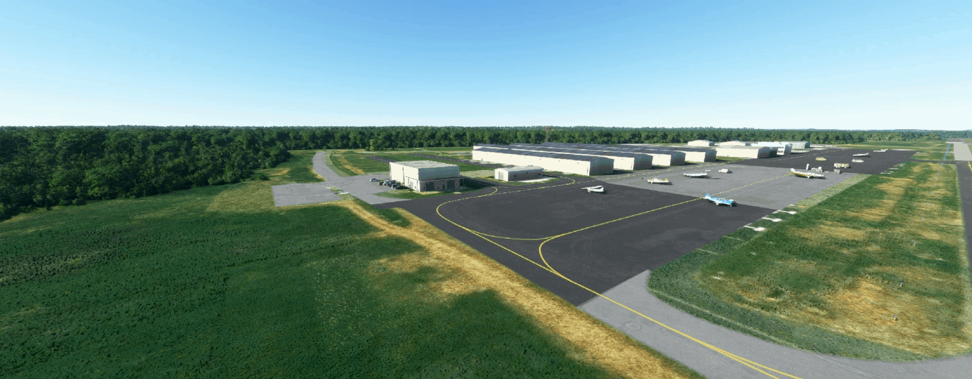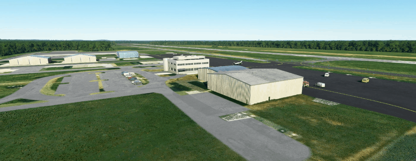 A very crude representation of Raleigh Executive Jetport, KTTA using MSFS buildings. Since the default airport is void of all but one building, this gives a little bit of realism when using this very busy GA regional airport. Just decompress and drag the file to your community folder