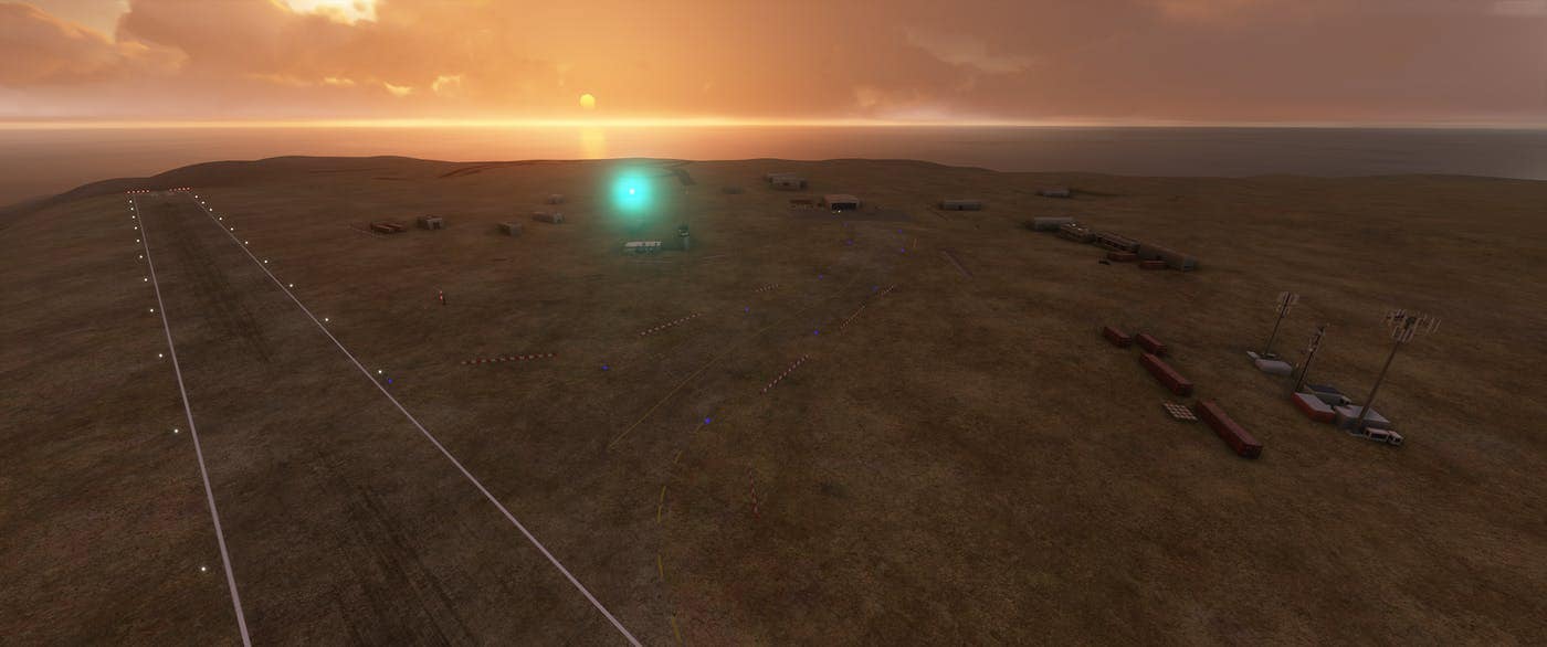 Expect some rough weather with tough approaches. and hard landings. Assets are all stock since this is my first SDK project. However, runways, approaches and services should be fairly accuate. Scenery includes the new runway 01 which is used for takeoff towards the north only and still missing from most charts. ATC, parking and fuel service are included, so you can use this as a hub for Antarctica bush flying. Unfortunately, neither Bing nor Google has a lot of data in Antarctica. I will try to add more Antarctica airbases when I find the time.