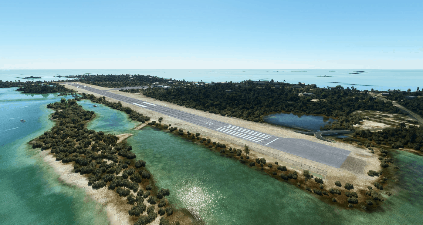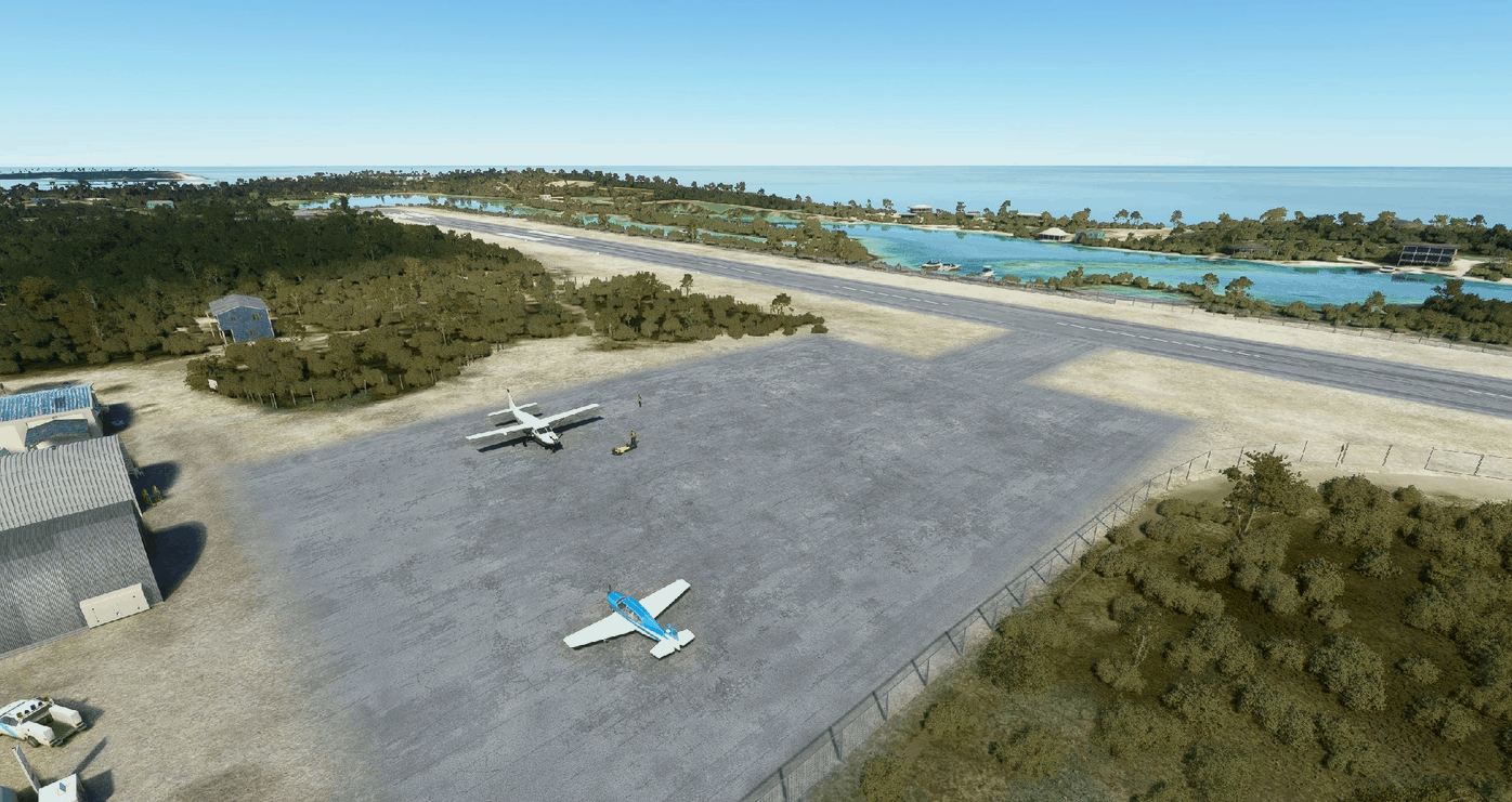 The Scenery features a custom Runway, Apron with 5 parking spots and Buildings as well as completely new autogen that covers the entire island and reworked terraforming and corrected water locations.