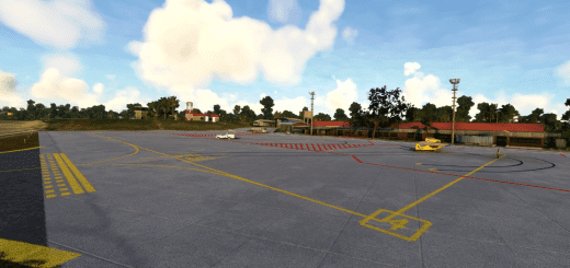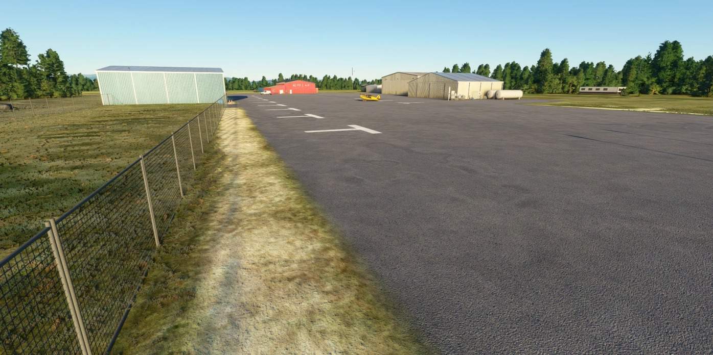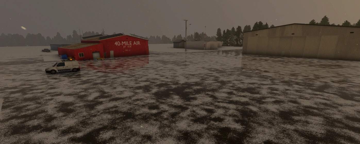 Tok Junction needed quite a bit of work. Beyond terraforming to avoid driving your plane up and down hills on the taxiways, aprons, and runway, the windsock and beacon were in the wrong location. Additionally, none of the buildings appeared at the airport. I have remedied those issues and added scenery, including custom buildings for the airport, including the hangar for 40 Mile Air.