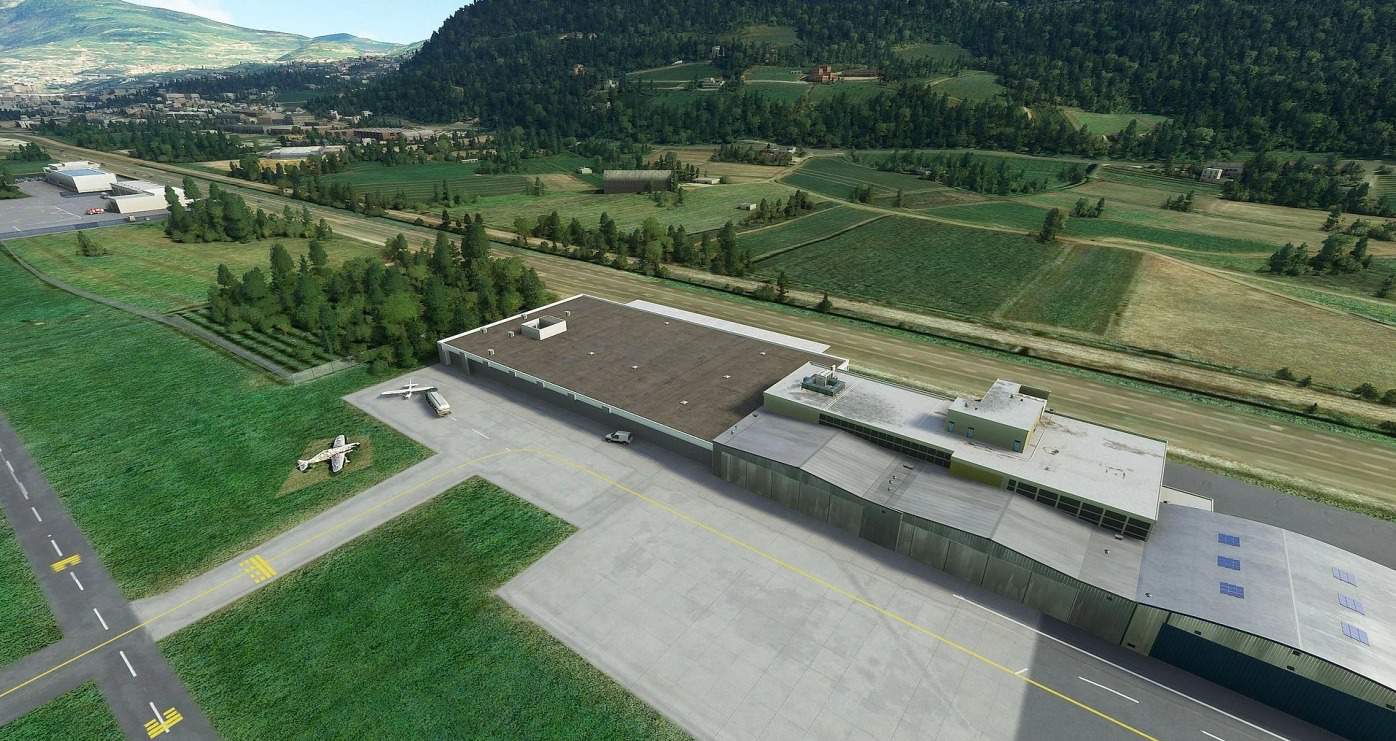 The hangars were placed using stock library objects with the closes match, the perimeter fence has been restored, the F-104 Gate Guardian has been added as well as the MC.202 in front of the Museum.
