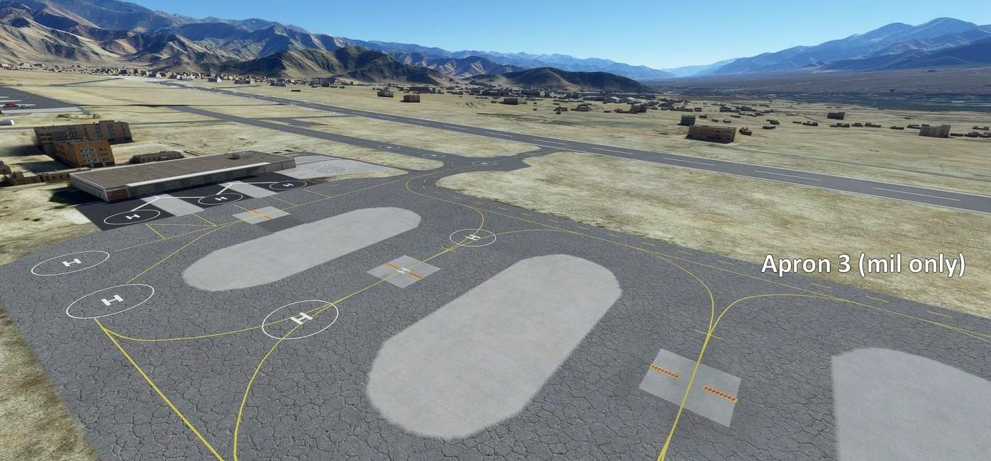 – a few custom ground markings (helipads, stands on apron 1)