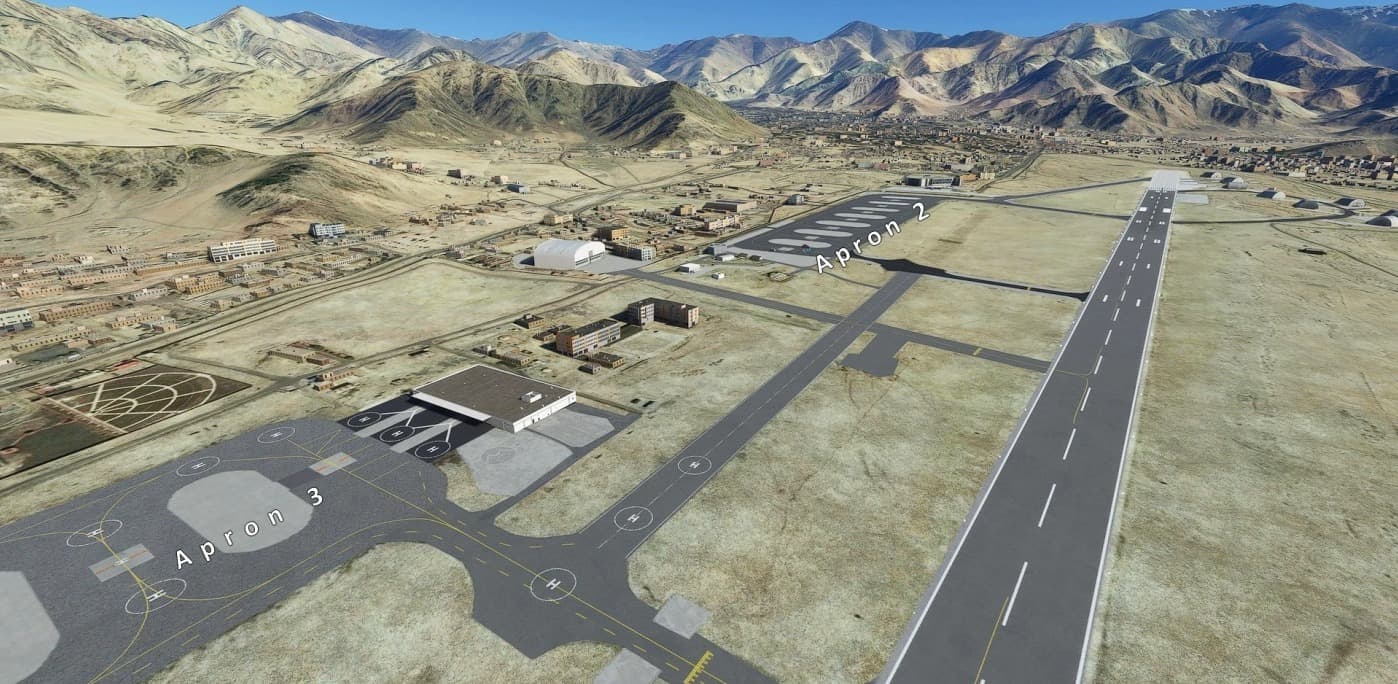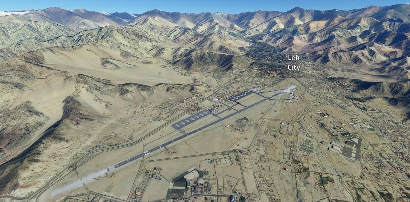Leh/VILH is a unique airport in Indian Himalayas with one-way ops due to terrain: Landing runway 07 only, take-off runway 25 only. All commercial ops are conducted in the morning before thermal winds awake. It’s also a busy military airport with a mix of logistic ops and fighter ops.