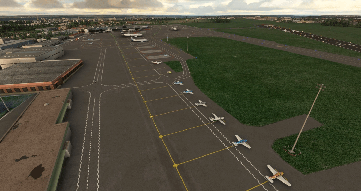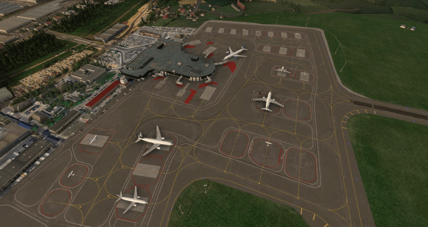 Vilnius is one of my favorite airports. Due to the fact that the standard scenery in the game is simply terribly inaccurate, I decided to make a custom scenery with taxiways and parking positions according to the latest AIP data and with markings that can be seen on google maps, instead of randomly scattered lines in default scenery.Unfortunately, I’m not a 3D designer, so there will be the default (autogen) terminal building. However, I hope you enjoy this scenery. I am sure of one thing – it is definitely better than default )