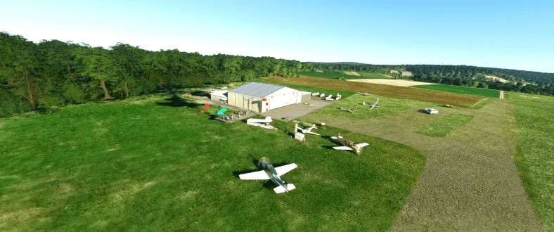 This scenery was created with objects from the Mikea.at library. The hangars do not yet have the typical red paint, which is otherwise easily recognizable when approaching the site. After the correction of the runway in Walldürn, this is my second project. Have fun and remember: “Altitude is safety!”