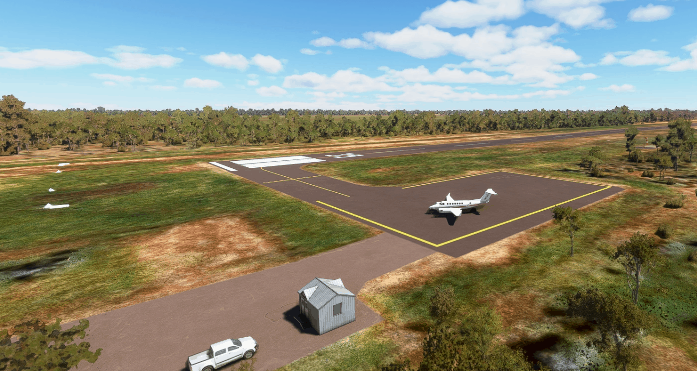 The main focus with this scenery was to fix the runway material and cut back a lot of trees in and around the airfield. This scenery uses all stock assets, you don’t need to download anything else for it to work.