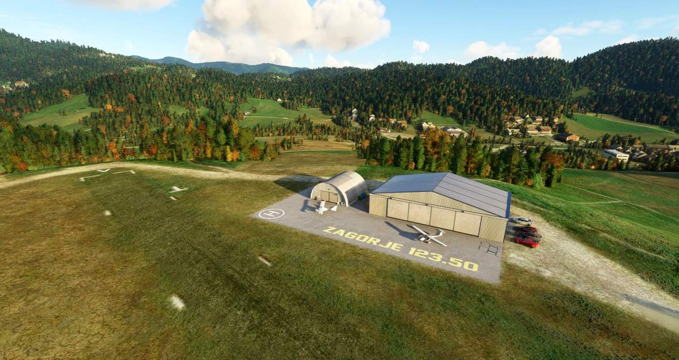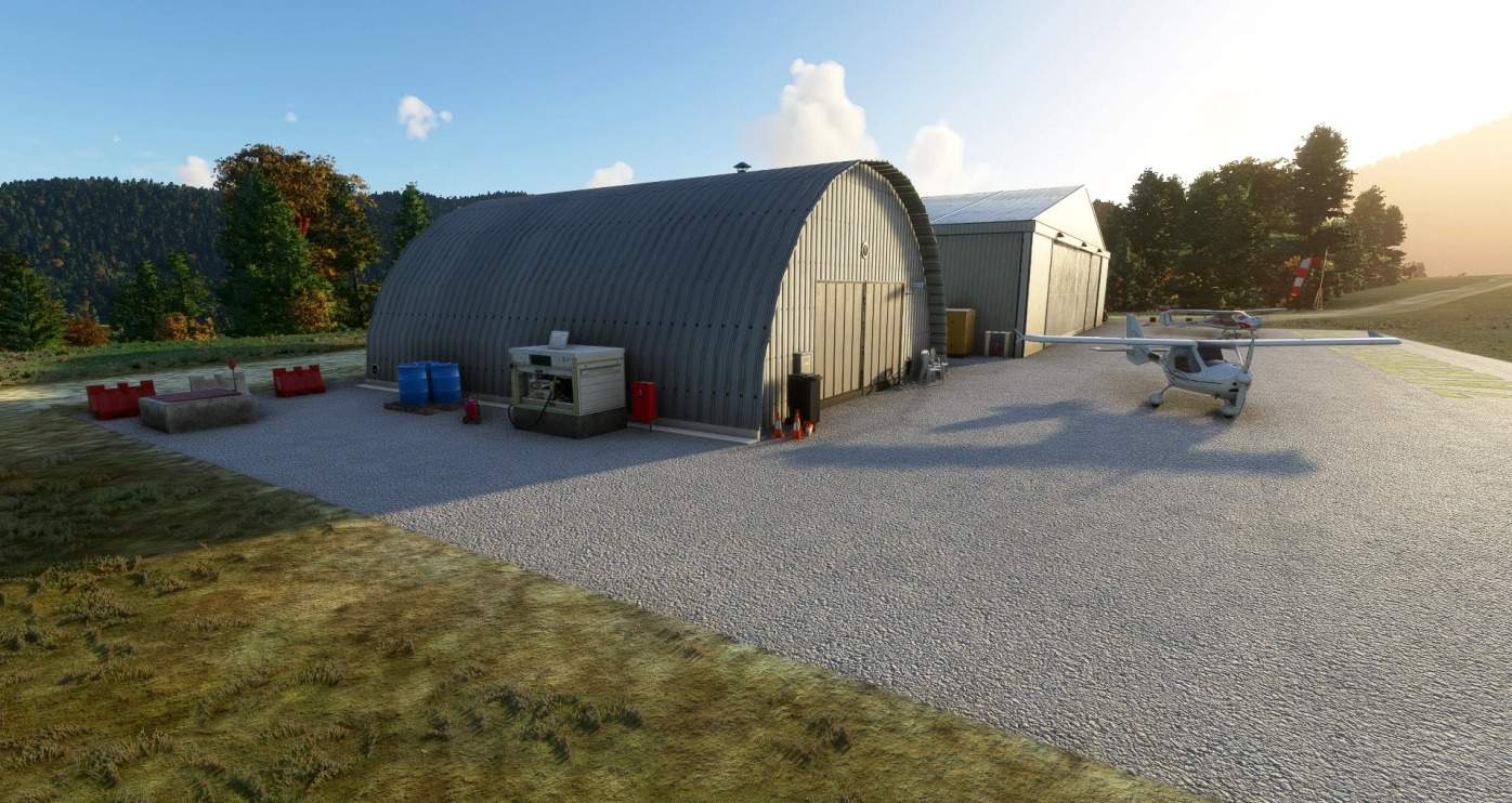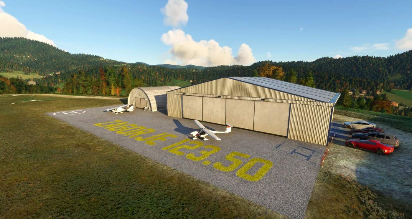 Currently there are only default FS buildings in the scenery. Maybe in a future version I could add self-built hangars… I have to study Blender first! Any help is welcome!