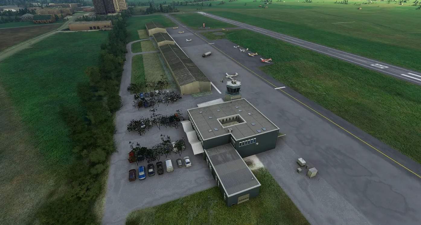 modified some large buildings placed by autogen with custom placed buildings similar to the real ones and added some cosmetics around the airport.