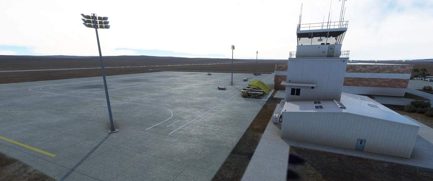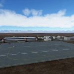 A glitch in default MSFS terrain is visible between bing imagery tiles around the airport. Cannot be fixed unless bringing hundreds of MB of more aerial stuff, which I’d rather avoid.