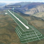 The base satellite imagery is poor on one side of the airport with a black line glitch but looks good on the other.