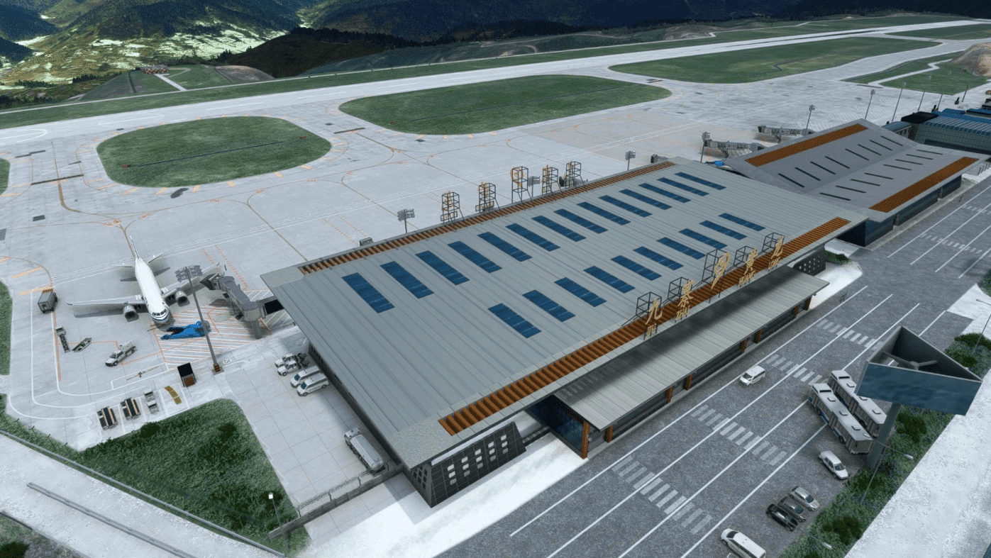 Jiuzhai Huanglong Airport is located in Songpan, Sichuan province in China. The airport opened in 2003 and has a 3200x45m runway 02 / 20 with a EMAS system due to steep hills at both sides of the runway. Since opening, the airport was expanded several times. The latest expansion is remaking the old terminal building for future international flights that started in 2020. I remade the airport since the graphics are very low quality in the base game and I added high quality models + ground and added ground data to match summer.