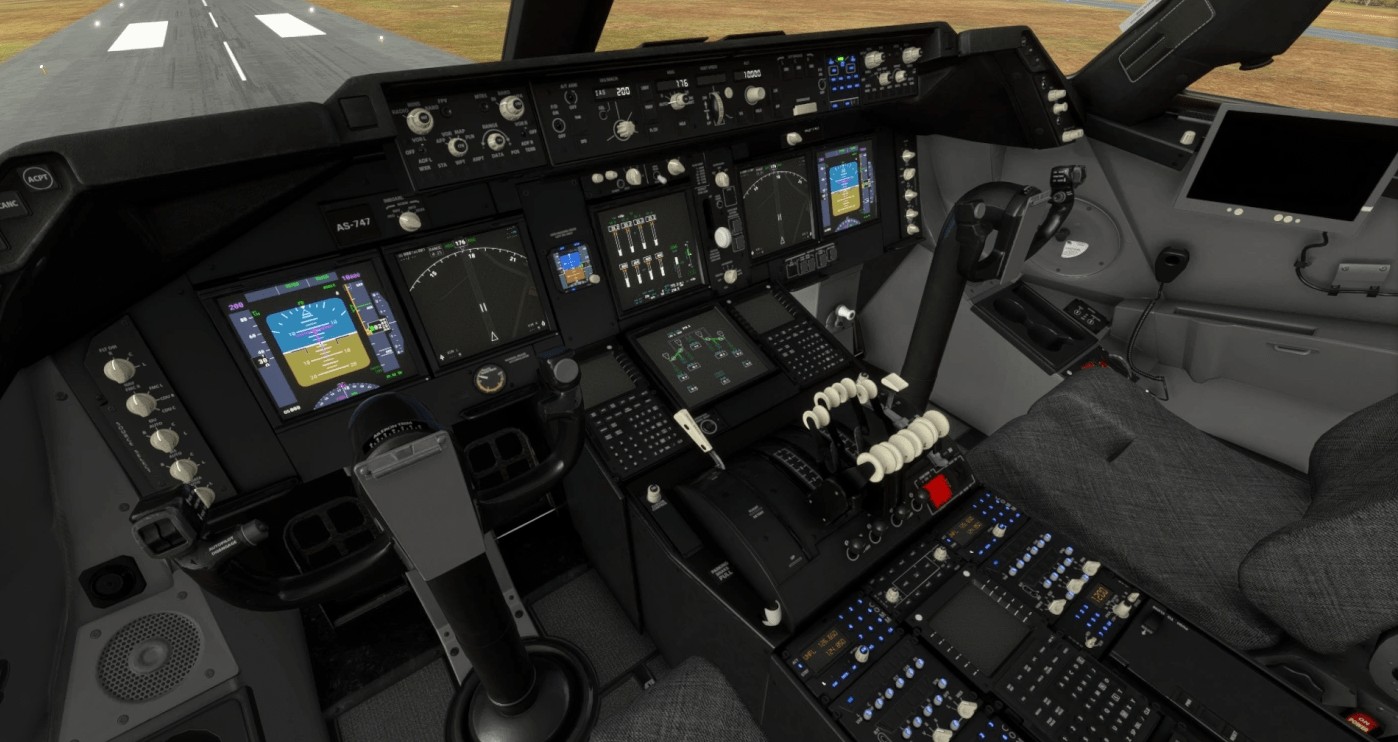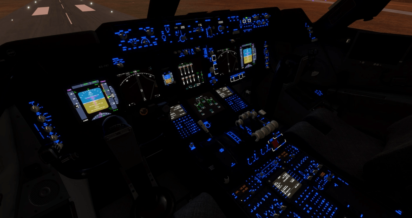 Boeing B747-8i Cockpit – Black-Grey with blue lighting v1.0
