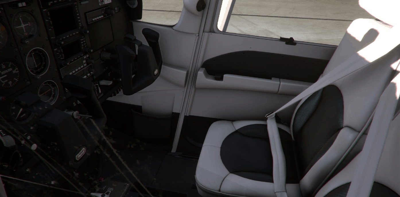 This is a group of DDS files to change the interior colors to white and the panel black, as it is right now, this is not a community drop in, you must overwrite the files in the C172 Classic’s Texture folder, so ALL your C172 Classic interiors will change to this.