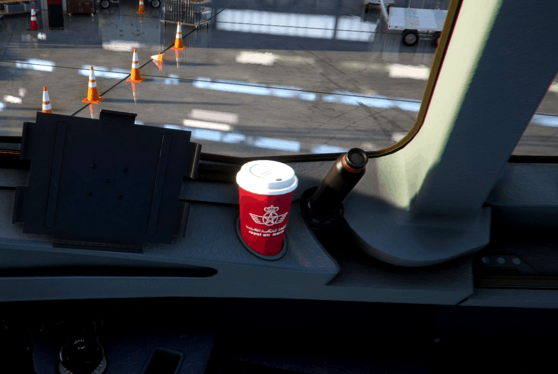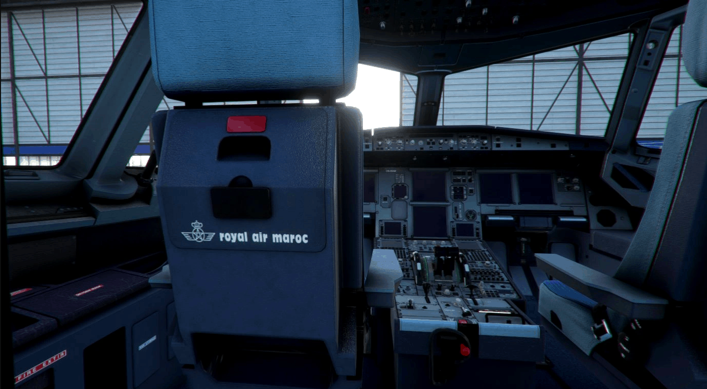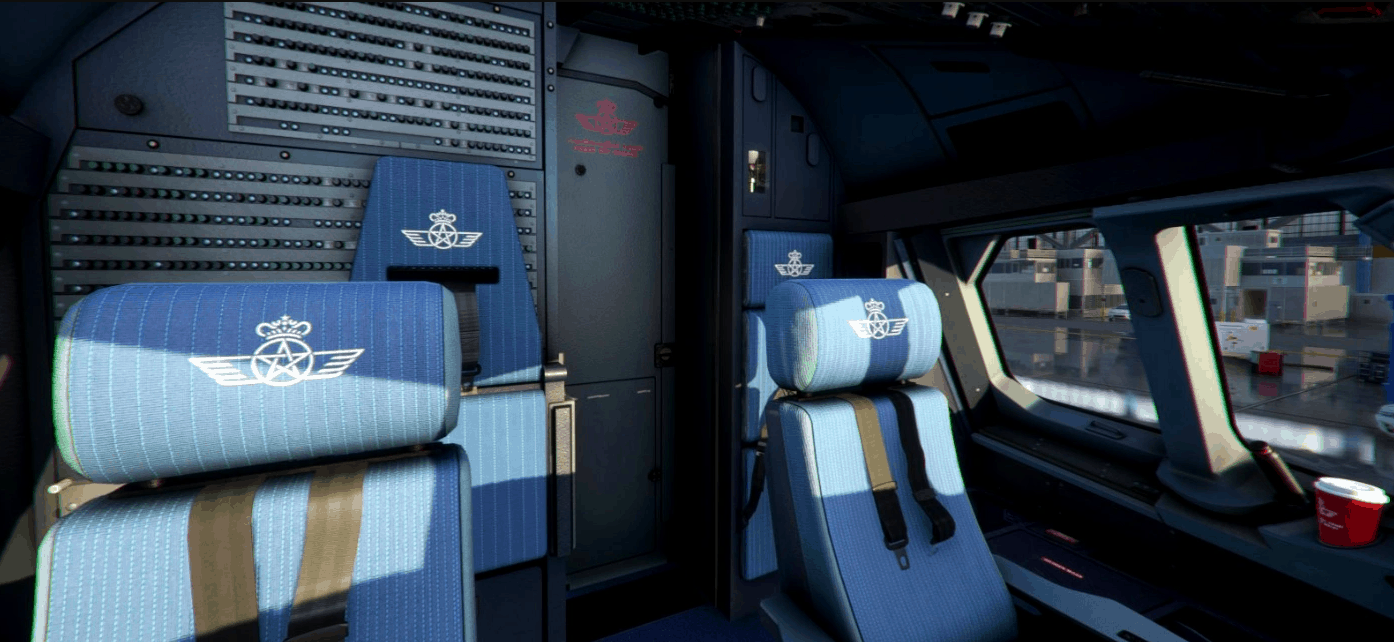 -This file includes a Royal Air Maroc cockpit with logos and a customized coffee cup.