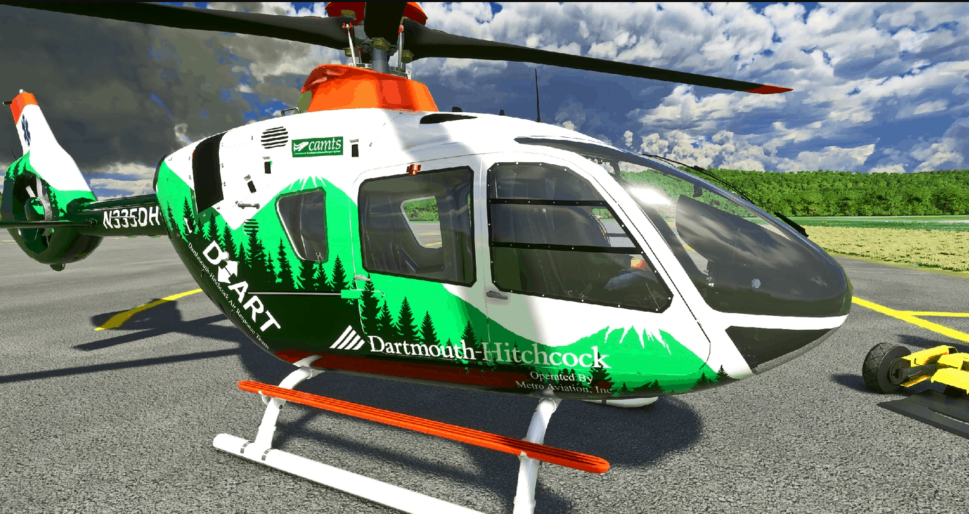 This is 8k livery for DHAR – Dartmouth-Hitchcock Medical Center. DHART is a unique team of acute care and retrieval specialists from Dartmouth-Hitchcock Medical Center. Since 1994 and aviation personnel employed by Metro Aviation, Inc. DHART has been delivering pre-hospital and critical care treatment and transport to patients across New England, in the State of New Hampsire.