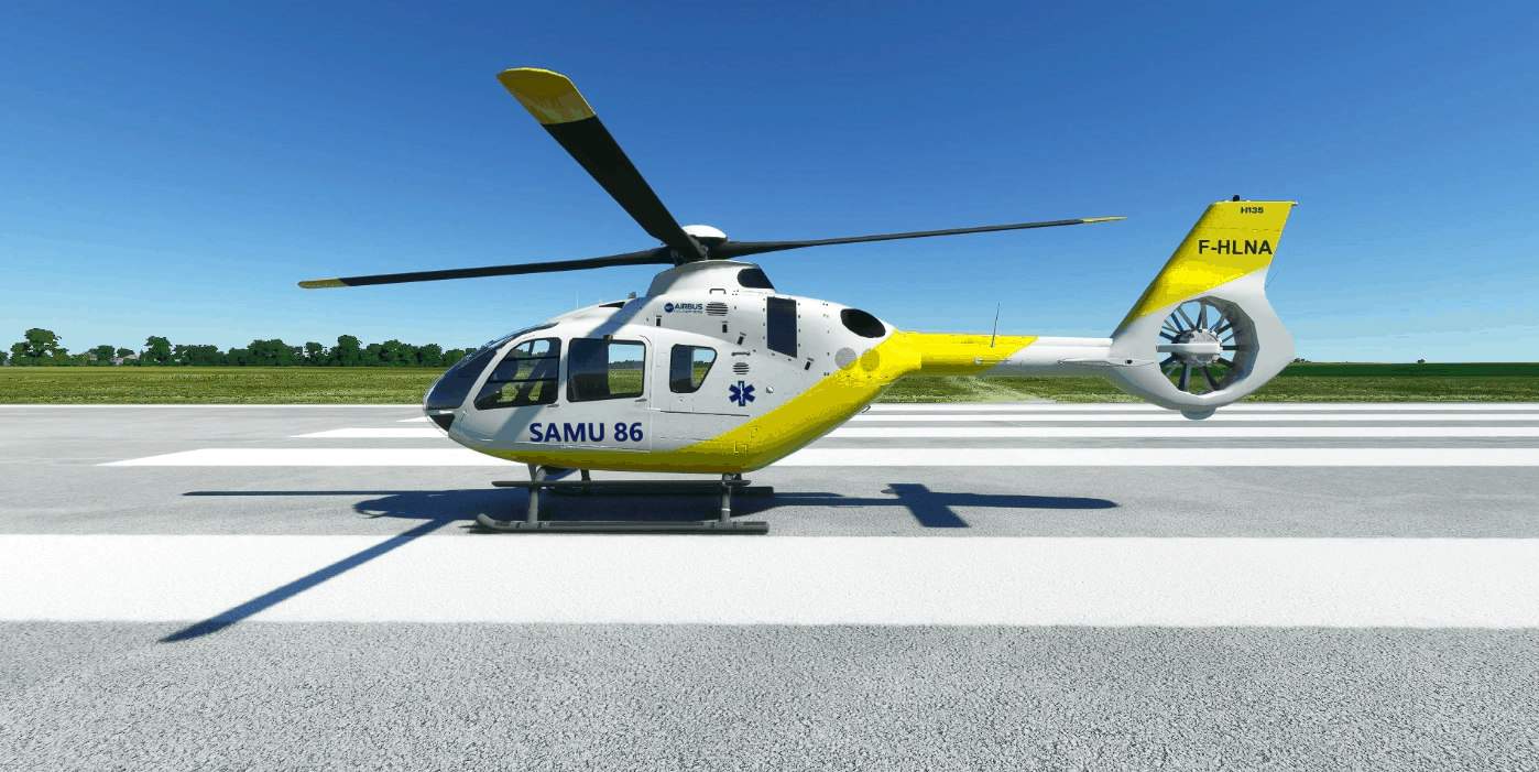 Je vous propose l’ancienne livrée du SAMU 86 (remplacé par le H145 – F-HSIF) qui était basé à Poitier en Poitou-Charente (NOUVELLE-AQUITAINE)