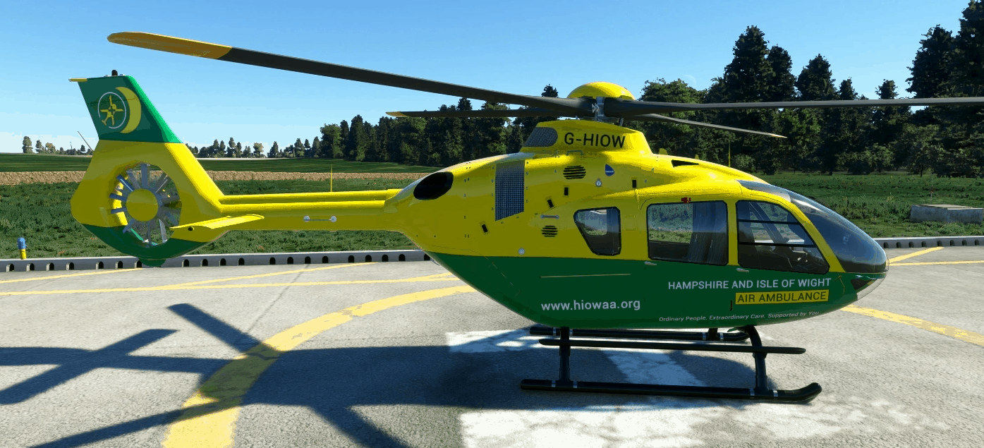 This is my interpretation of the Hampshire & Isle of Wight Air Ambulance livery for the Airbus H135 by Hype Performance Group, now in 8k.