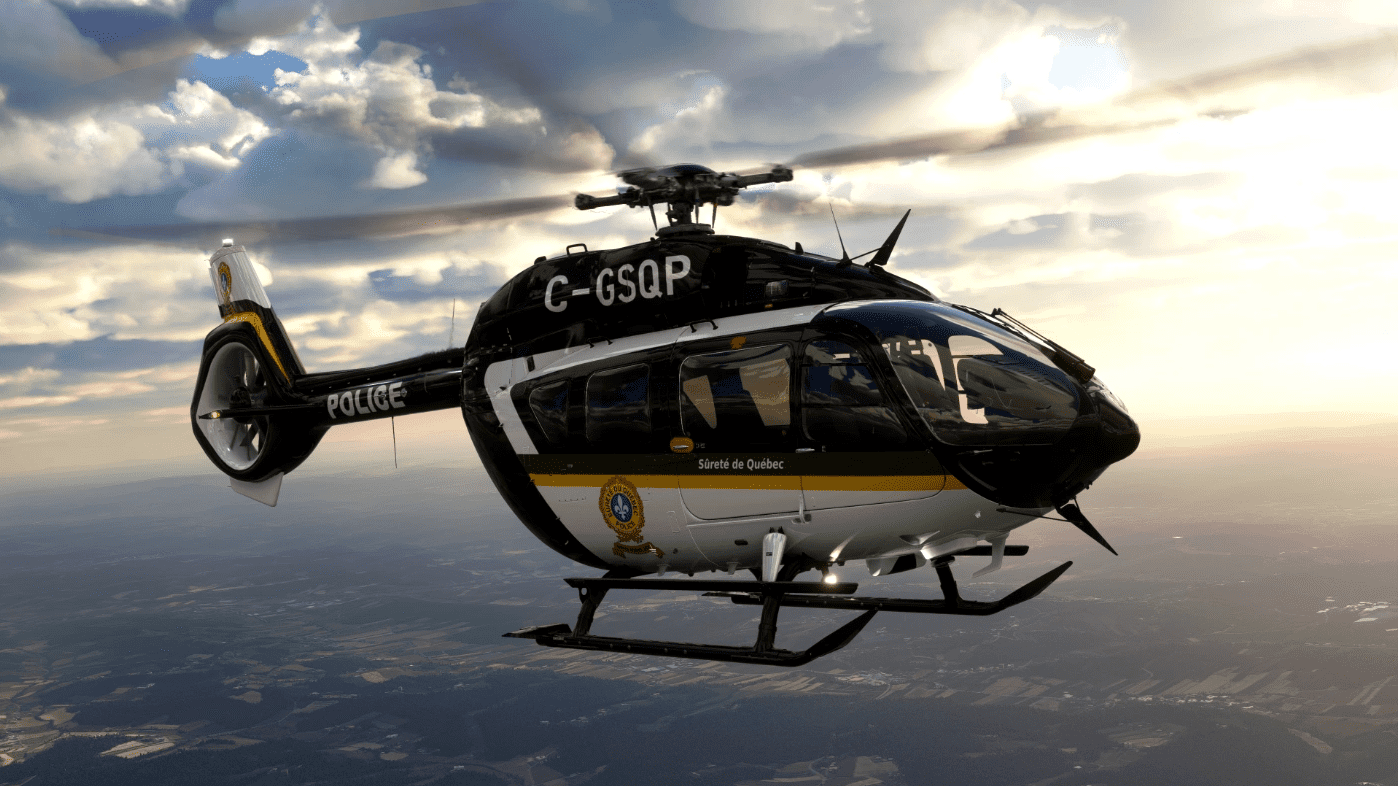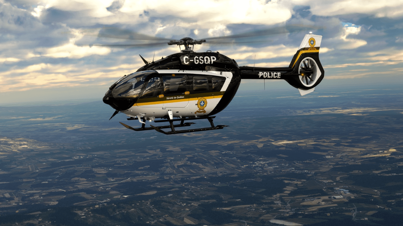 Another real world livery on request: The Airbus H145 Quebec Police C-GSQP is operated by the Quebec Service Aerien Gouvernemental for the Sûreté du Québec (Quebec Provincial Police) and based in Montreal, Québec, Canada.