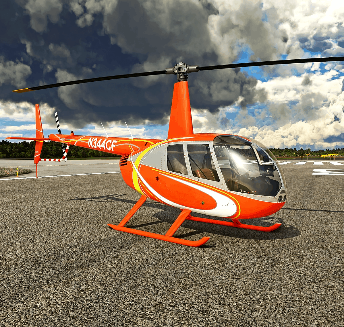 A recreation of the beautiful real life N344CF for the Rotor Sim Pilot freeware Robsinson R44 Raven II helicopter using 8K PBR textures.