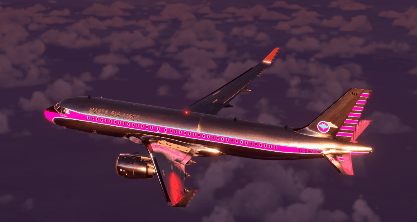 This look made its debut when Manta took delivery of its first Airbus A320neo on April 9th, 1952. At the time, 320 Sim Pilot was offering tutorial demonstrations of airline operations in town squares around the world using a Link Trainer that was enhanced with the FlyByWire A32NX mod version 0.0.0.0.0.01 and later version 0.0.0.0.0.02 which included the printer. G-SIMX, which I have depicted here, would receive numerous updates and overhauls over the years, having its aluminium construction replaced with composite materials, and even being completely converted to an A321 in 2020.