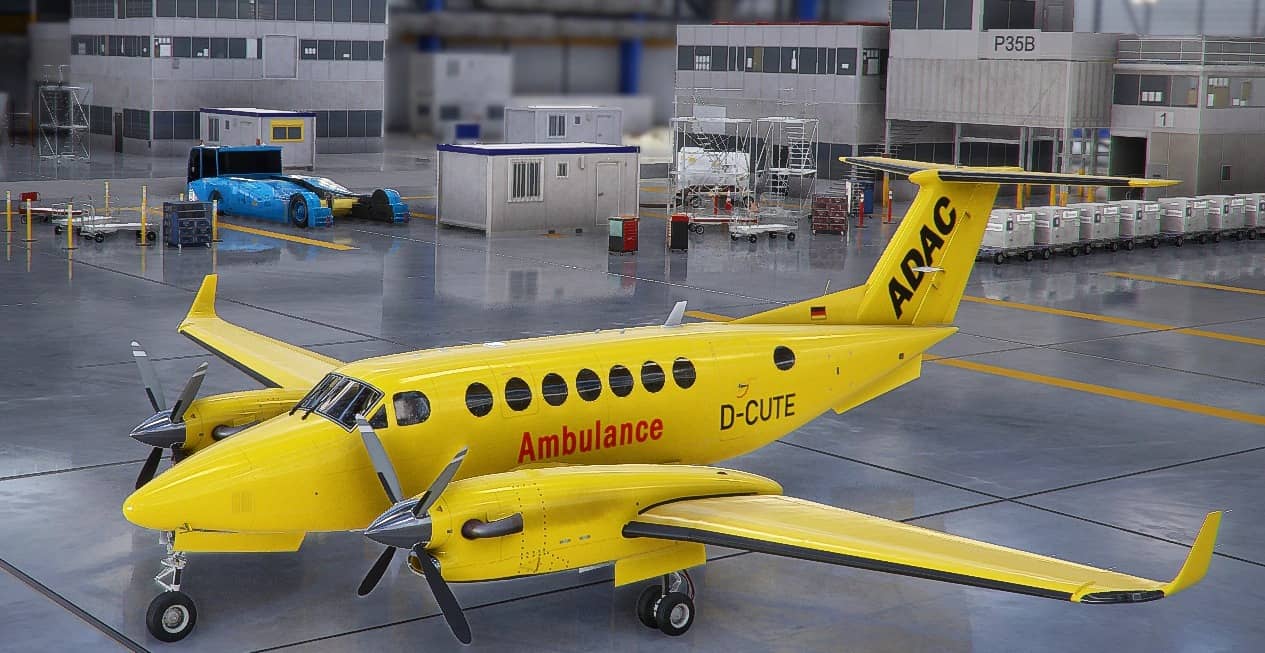 ADAC Air Ambulance D-CUTE Germany. Textures only for the MFS default KIng AIr B350i. King Airs are a popular choice as an air ambulance giving you an excuse to fly anywhere you like! Installation is Drag and Drop to your Community folder.