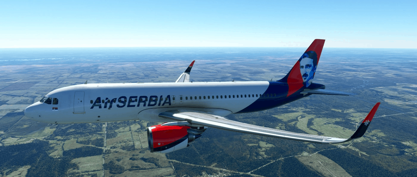 This is my interpretation of Air Serbia’s special ‘Tesla’ livery for FlyByWire’s A32NX.