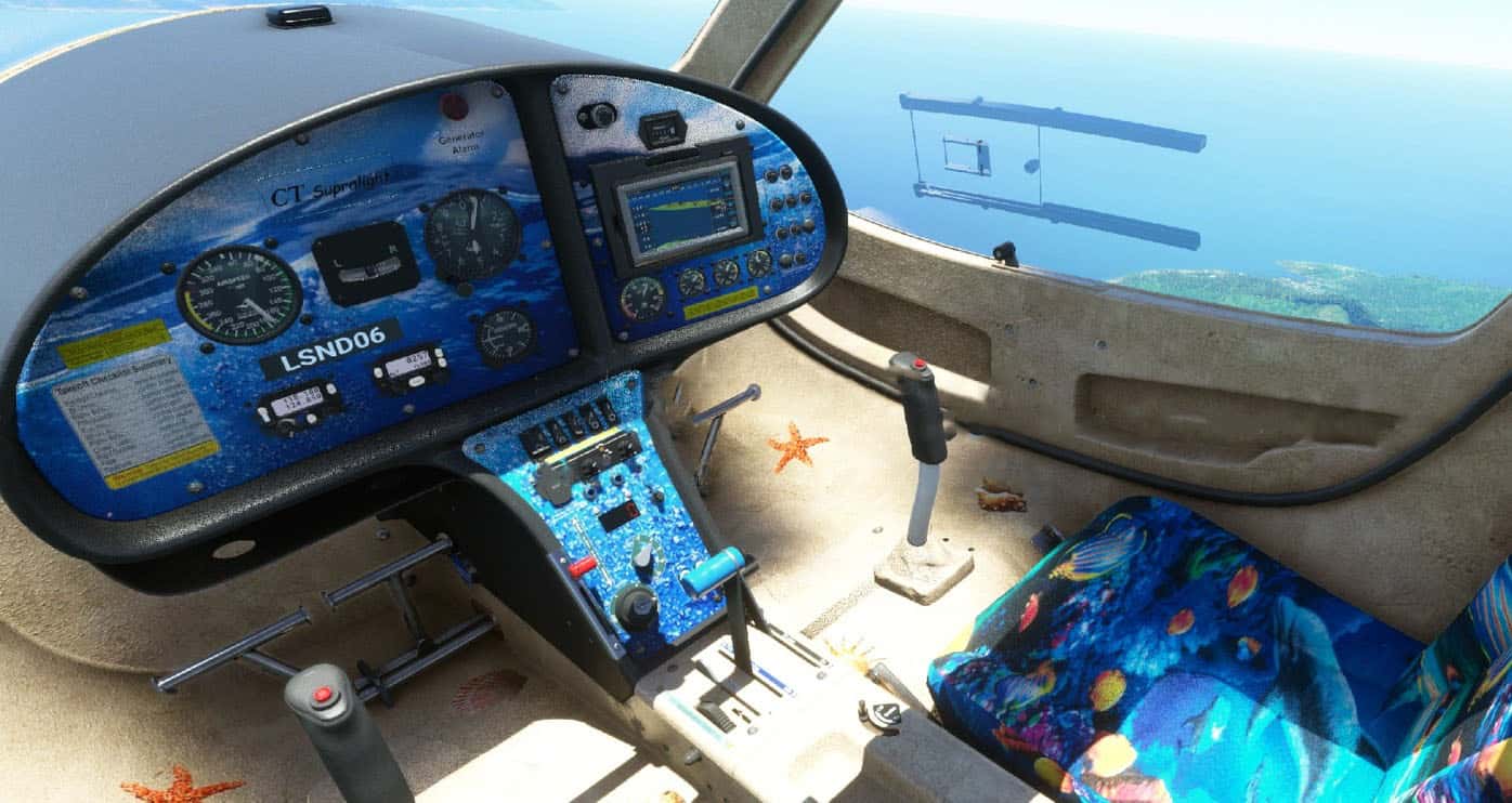 version dérivée de Air Tahiti Nui sur Flight design CT + un cockpit plage, les pieds sur le sable avec coquillages + tableau de bord version MER