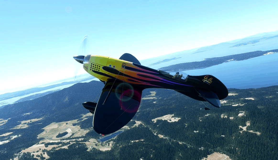 As this aircraft is modeled after a well known Radio Control Aircraft, both Liveries FIREBALL and SEVEN are ficticious, although SEVEN is a close resemblance to the two real life versions of the Famous GeeBee Racers and it has replicated decals as such.