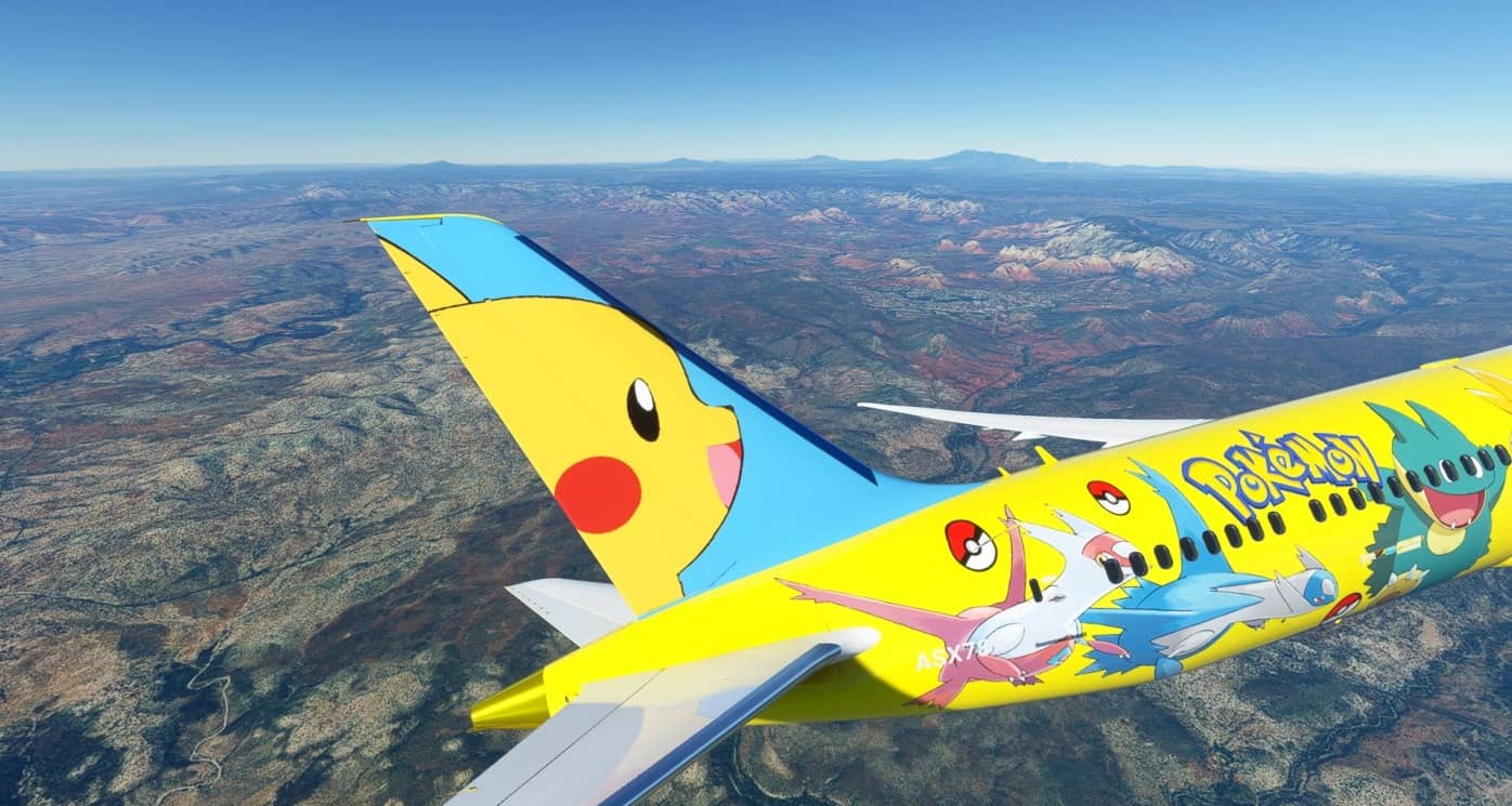 Hey there! I decided to make a little step up, and I’d like to showcase this time my first ever 787 Livery. This is inspired on the real life 747-8 ANA pokemon livery they have! Obviously it is not identical because of some unfortunate restrictions, but It looks very similar! Hopefully you guys like it.