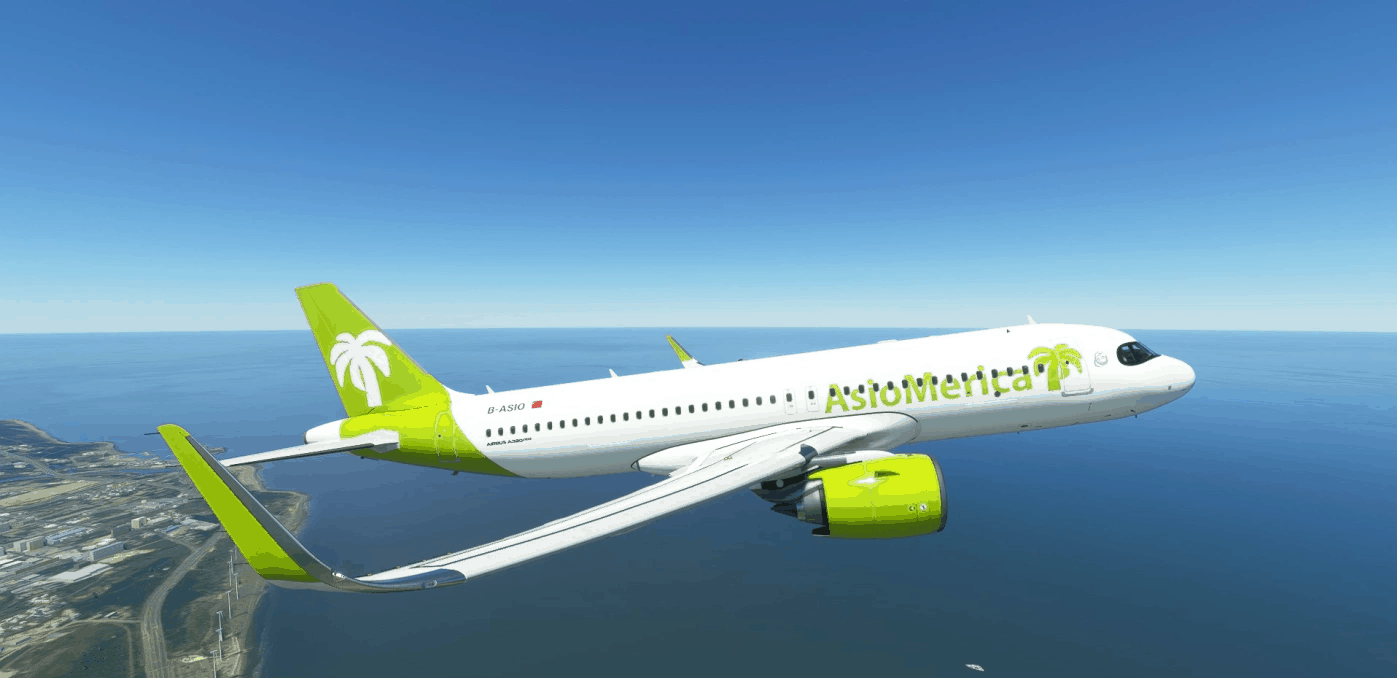 AsioMerica A320neo en 8K, a fictional airline, based in Beijing, in China.