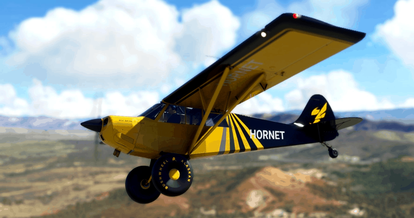 The Hornet Livery for the Asobo X-Cub we all know from the Sim Update 5 loading screen is now also available for the Asobo Husky A1C Big Wheels.
