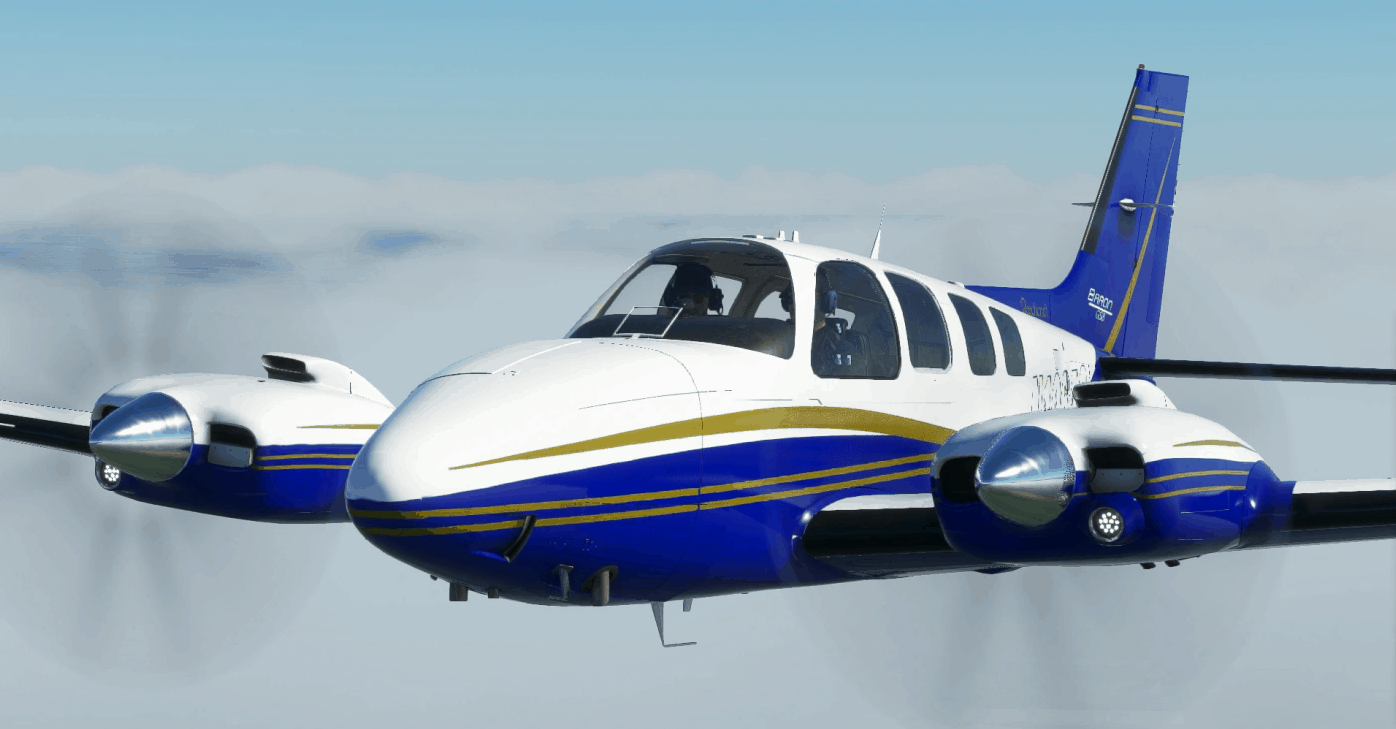 Beechcraft Baron 58 N1064C. I found this aircraft picture and wanted to creat it for MSFS. While most of it is as accurate as I can get it, there are still some missing paint and some added where I didn’t want it due to the way the textures are set up in the model. Once they have fixed the Model I will endever to correct this in the painting.