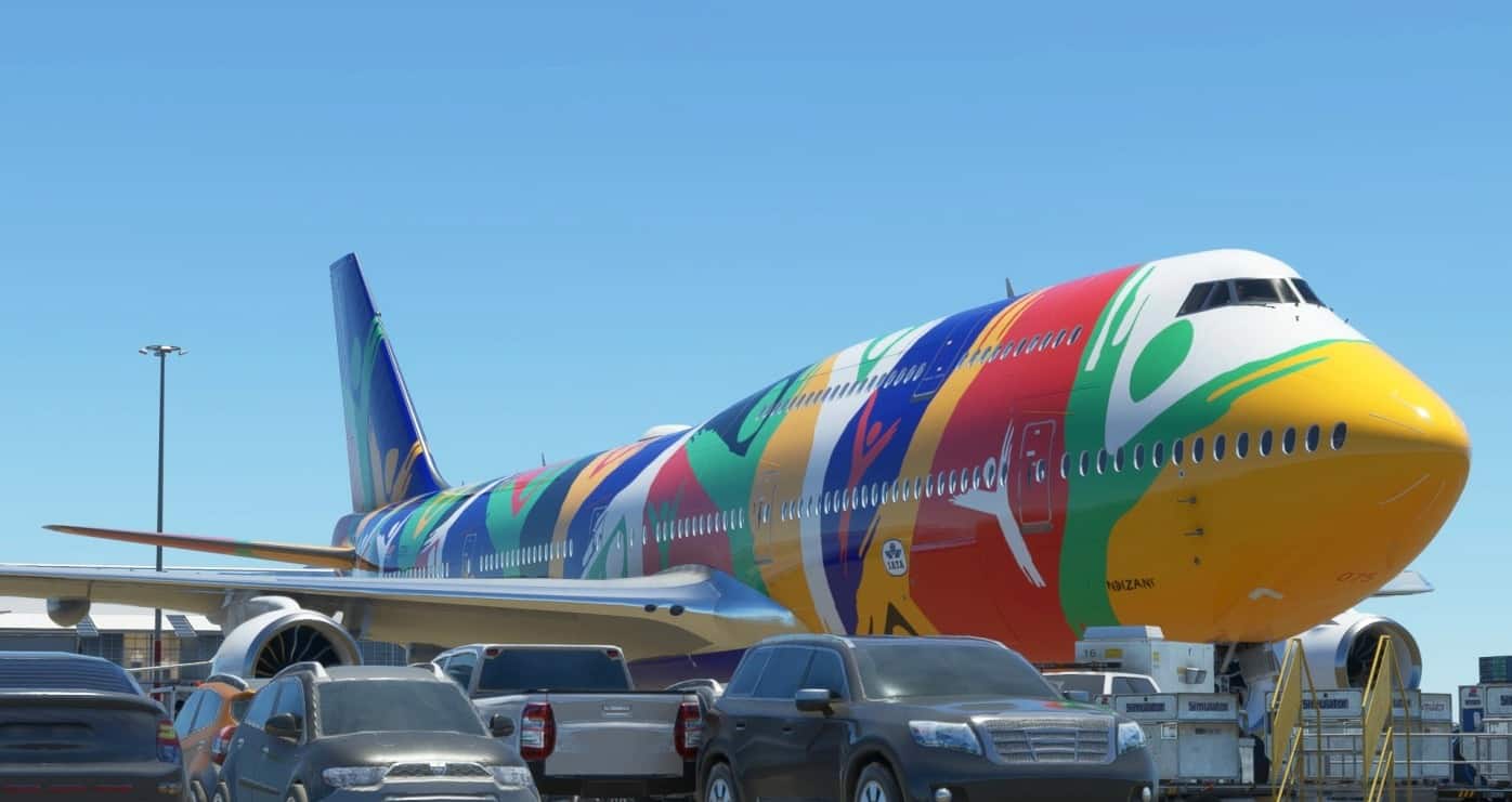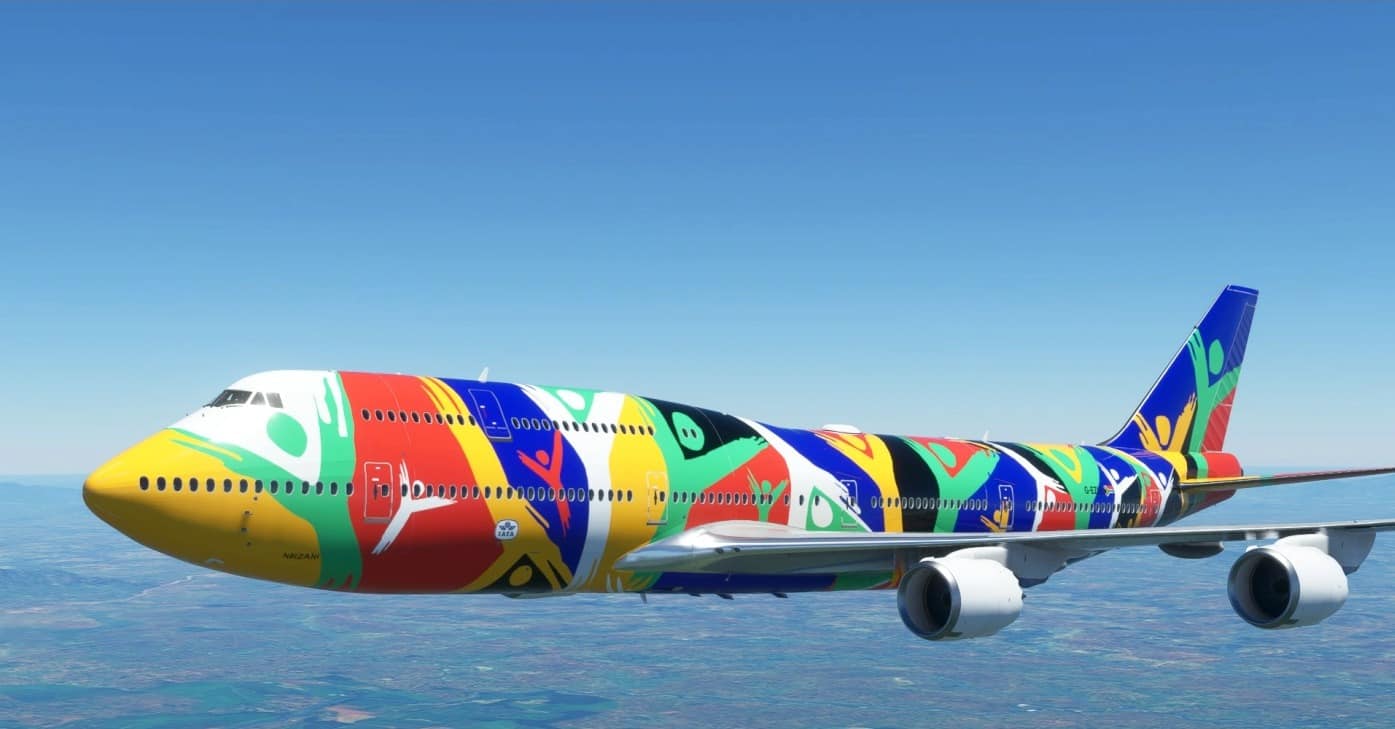 Livery inspired by Boeing-747-312 registration ZS-SAJ. It is not exactly as real plane because MSFS have limitation in some textures.