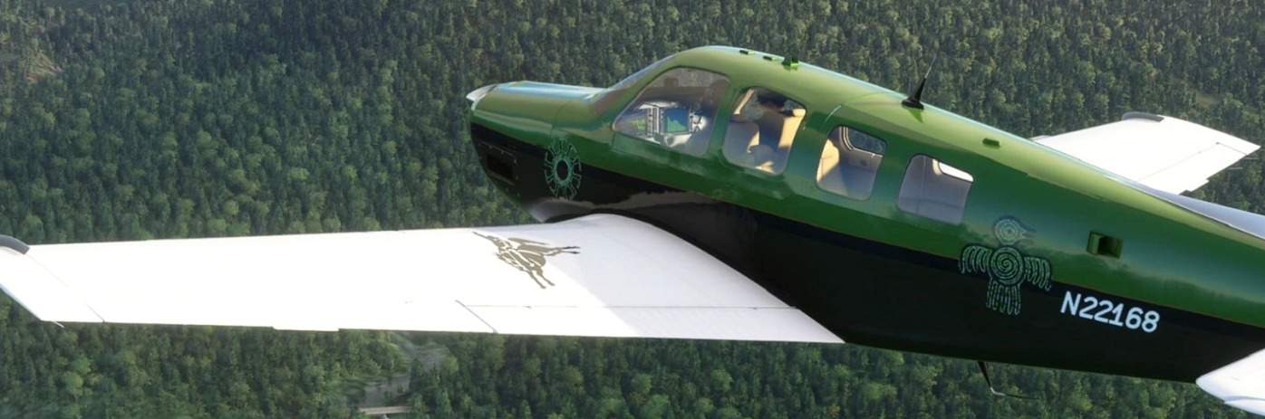 This is a repaint for the msfs2020 Beechcraft G36 Bonanza. It’s an imaginary livery with pictures on wings and fuselage from original painting by Native American people and typical “Rodeo” drawing