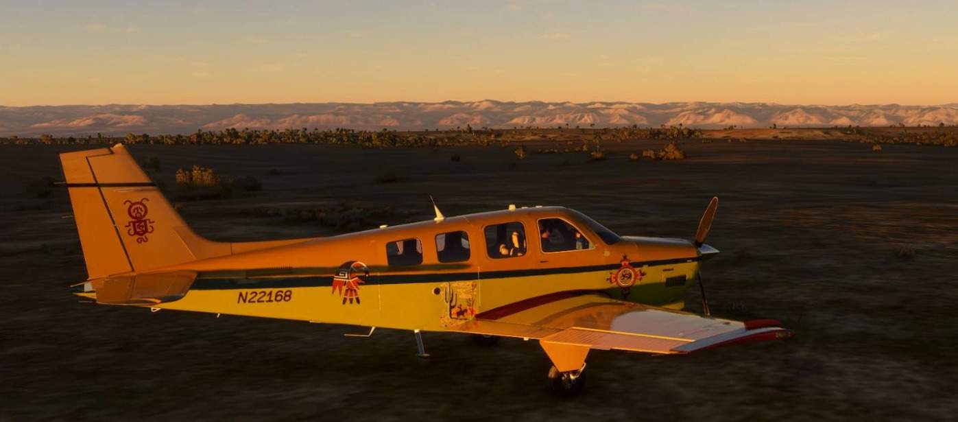 This is a repaint for the msfs2020 Beechcraft G36 Bonanza. It is an imaginary livery with pictures on wings and fuselage from rock art and original painting by Native American people, local history and so… The fictive registration number N22168 is a part of the texture and should be not changed with these textures (*)
