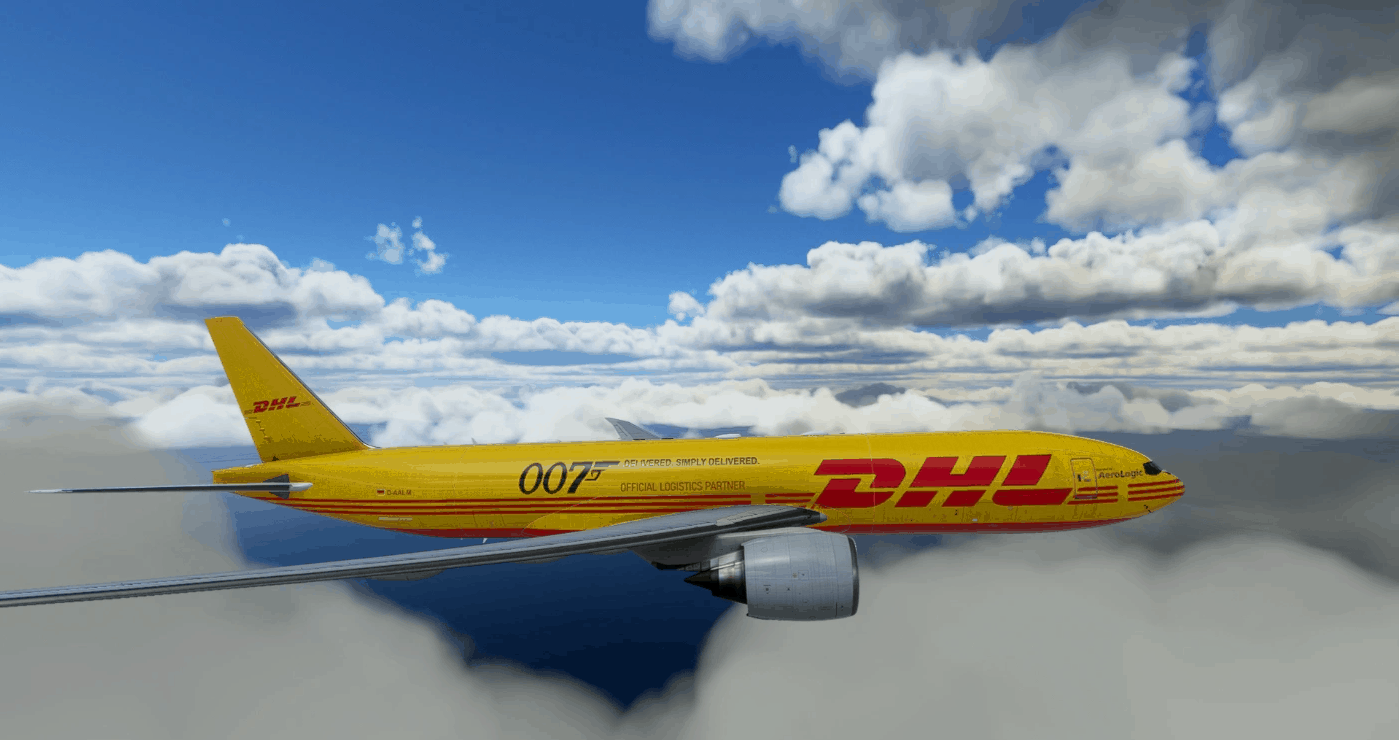 Captain Sim B777F DHL 007 Bond Livery operated by AeroLogic D-AALM | 4K v1.0