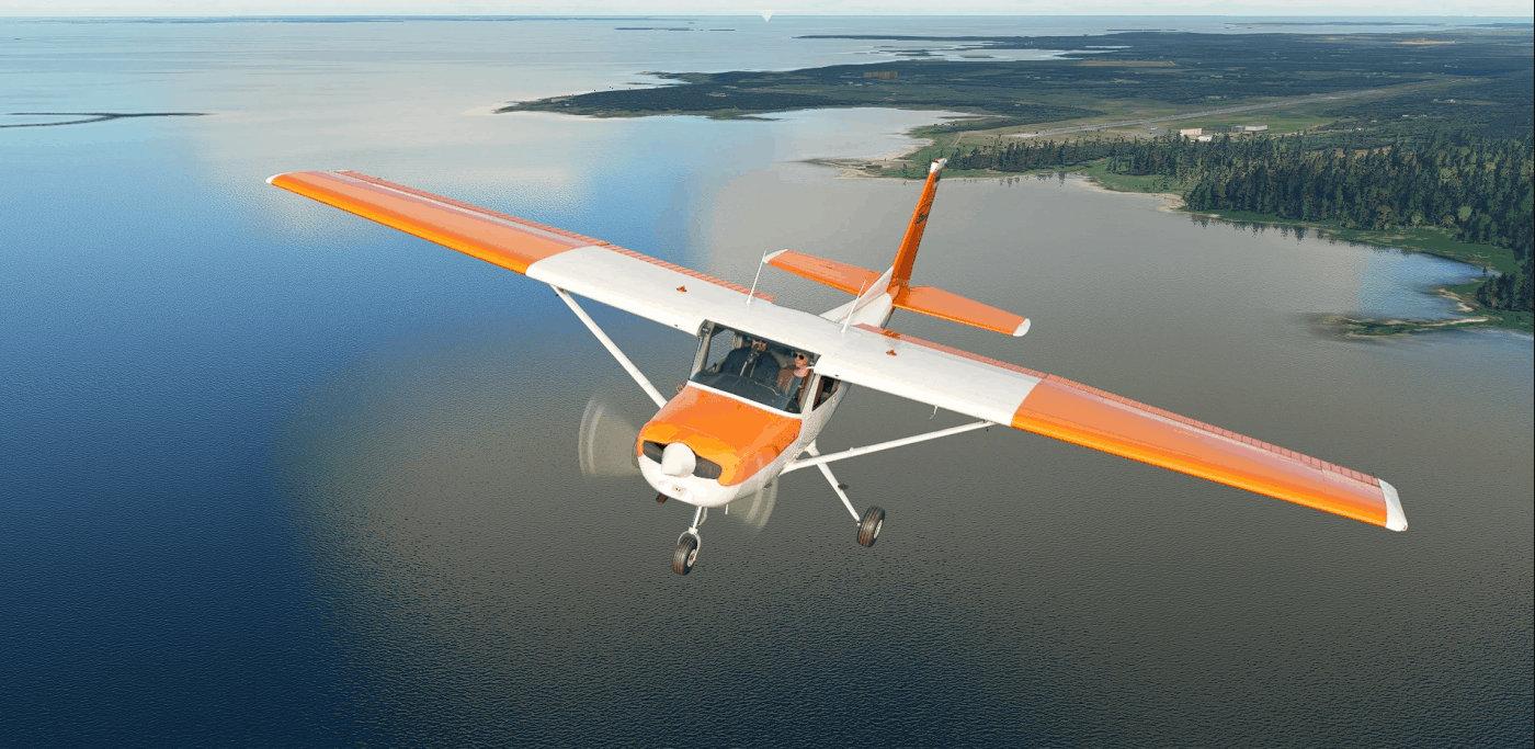 The livery is somewhat simplified due to limitations of the Cessna 152 model.