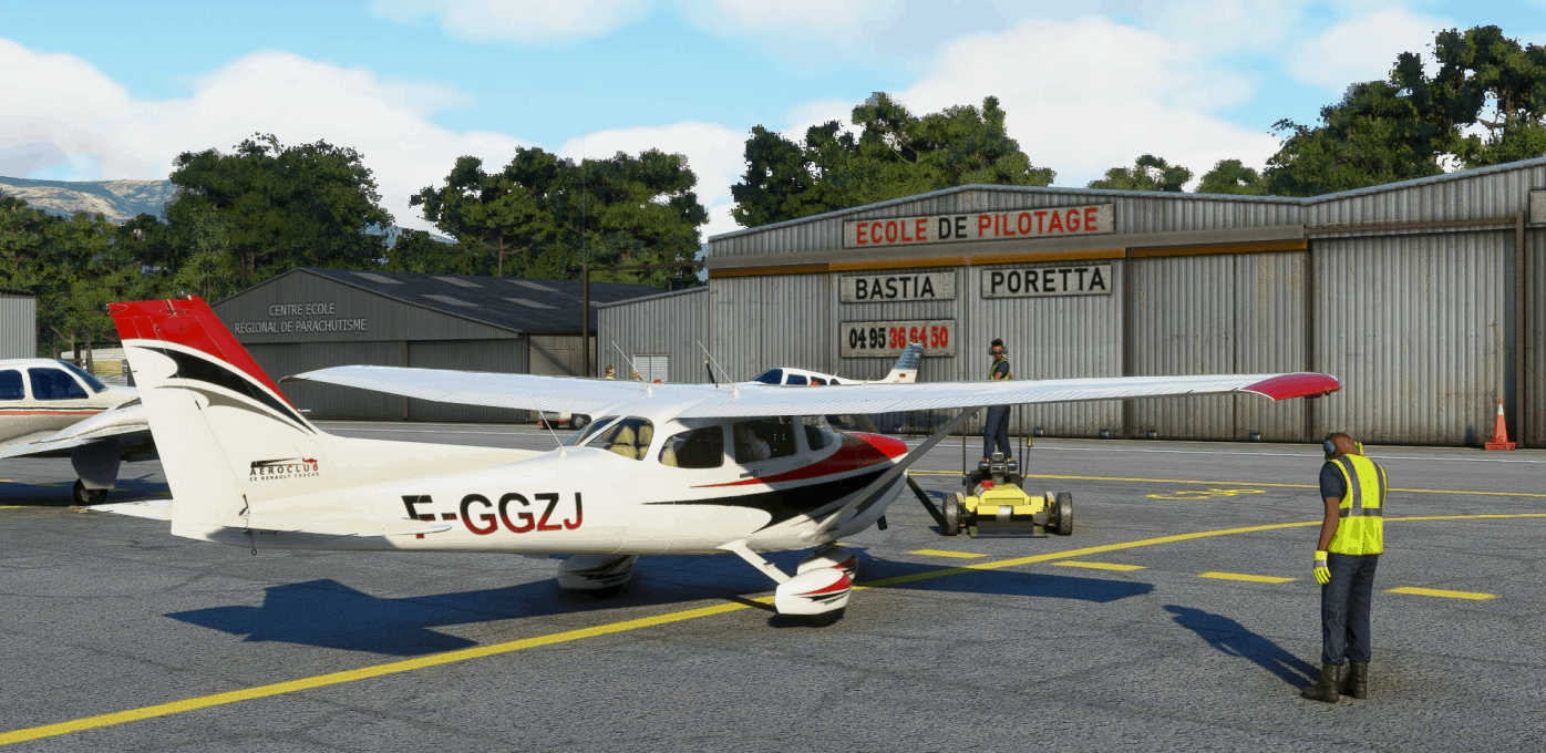 Cessna C172 G1000: This livery is inspired by the Cessna C172N, tail number F-GGZJ, belonging to the “Aéroclub CE Renault Trucks” based in Lyon Bron, LFLY .